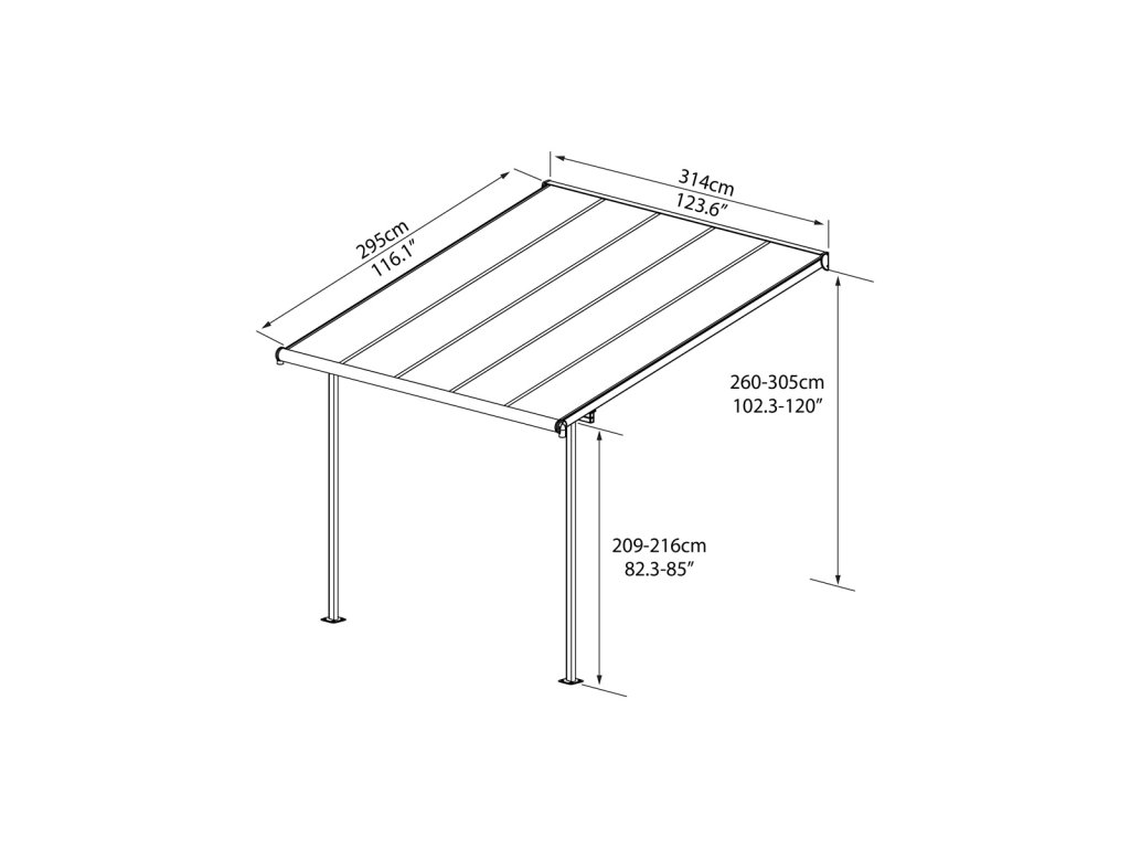 | Rozměry přístřešku (D x Š x V): | 314 x 226-286 x 260-305 cm |