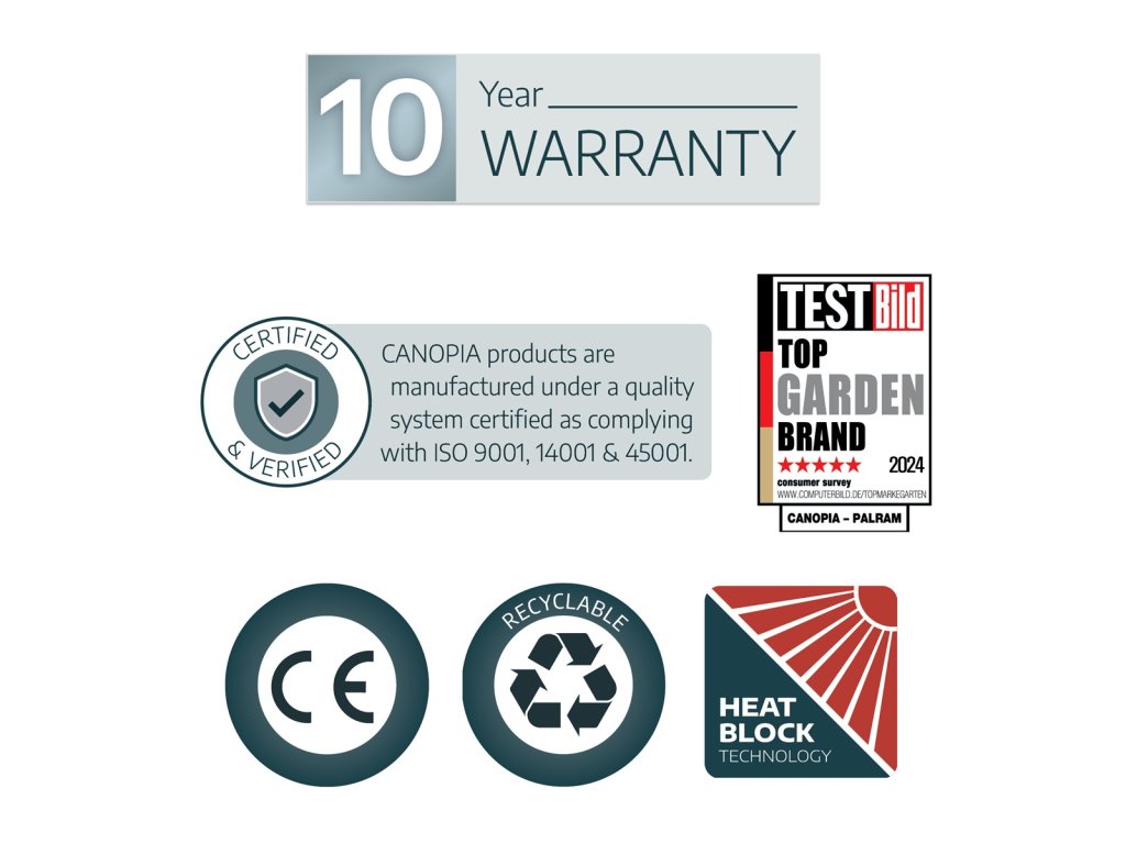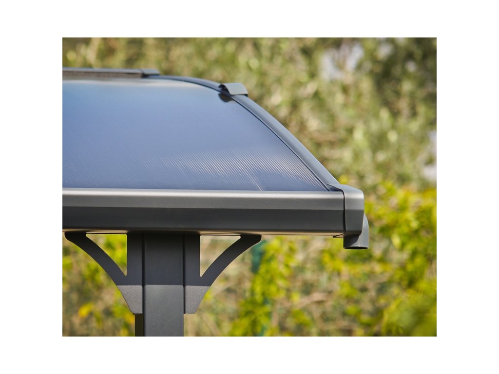 Moderní, prostorný a elegantní přístřešek, který díky chytré technologii společnosti Palram zvládnete postavit sami během jediného dne. V podstatě nezničitelná konstrukce z hliníkových profilů 80 x 80 mm a silného dvoukomůrkového polykarbonátu se 100% UV ochranou Elegantní design, bohatě dimenzovaná šířka pro snadný přístup Střešní panely odolné vůči vysokému zatížení i kroupám, polykarbonát v bronzové barvě Unikátní systém nasunutí střešních panelů bez dalšího spojovacího materiálu – dokonalá těsnost, jednoduchá montáž a netečnost k teplotní roztažnosti panelů Hliníkový rám s galvanicky ošetřenými kovovými prvky je ošetřen práškovou barvou a je vysoce odolný vůči rezavění. Možno vybavit LED osvětlením. Díky přehlednému manuálu a jedinečné konstrukci stavba nevyžaduje více než 2 osoby Snadná montáž: • Montáž zvládnou pohodlně dvě osoby během jednoho dne • Žádné těžké díly na manipulaci •Přehledný návod Vás provede montáží krok po kroku • Všechny spojovací prvky součástí dodávky • V případě potřeby se dá přístřešek snadno rozmontovat a umístit na jiné místo Široký a vysoký vstup pro bezpečný a snadný průchod Pevná a odolná konstrukce • 100% UV ochrana - proti žloutnutí a křehnutí střešních panelů • Přístřešek nevyžaduje další údržbu • Snadné čištění myčkou nebo jen deštěm Skvělý přístřešek nejen pro parkování, ale i pro hřiště, odpočinkové posezení apod: • Chrání automobil před deštěm, sněhem, UV zářením, kroupami či padajícím listím • Integrované okapy dovolí bezpečně zachytávat a odvádět voduDodatočné parametre