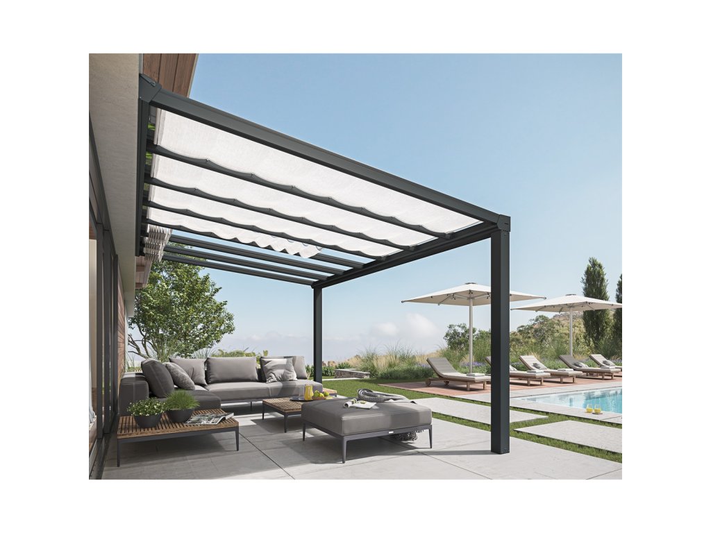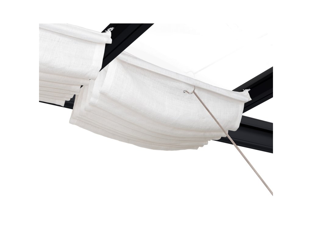 Praktická bílá vícedílná zatahovací zástěna, která se snadno instaluje do drážek profilů pod střechu. V případě slunečného počasí účinně chrání před přílišným přehříváním interiéru.Dodatočné parametre