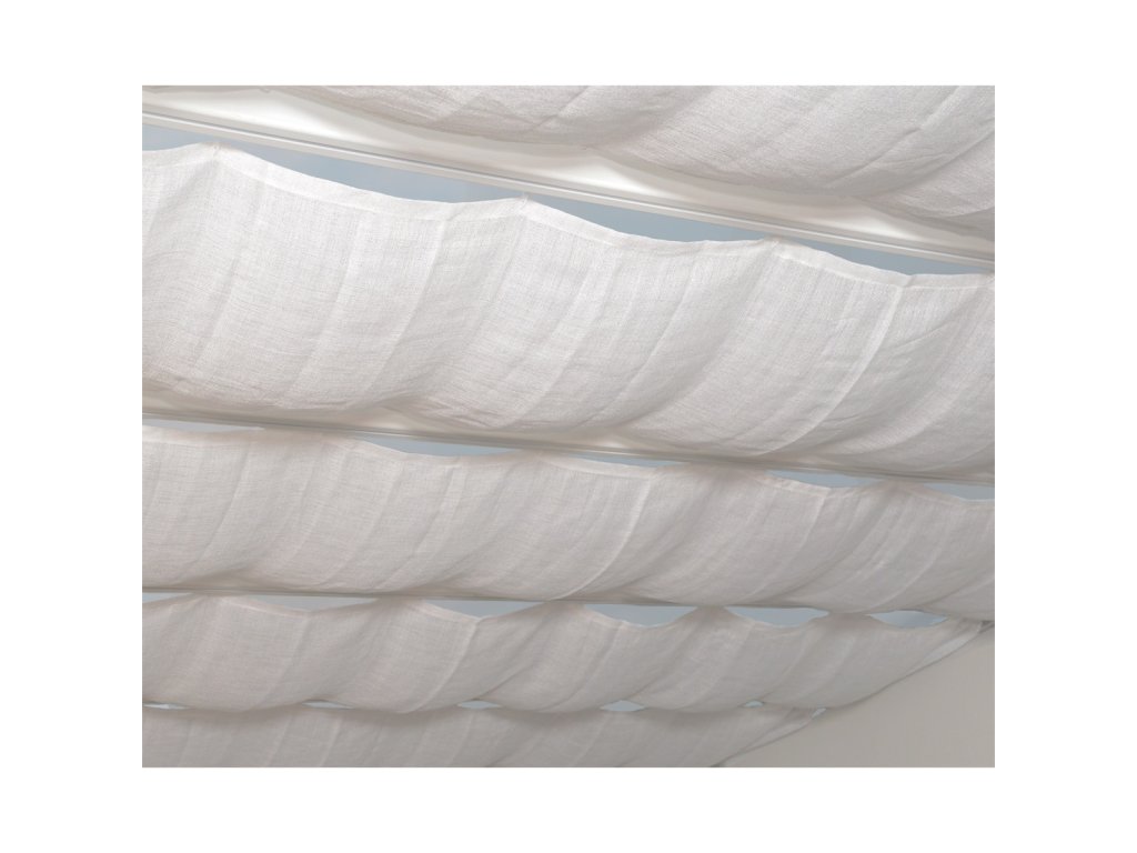 Krycí zástěna Praktická krémově bílá vícedílná zatahovací zástěna, která se snadno instaluje na lanka pod střechu. V případě slunečného počasí účinně chrání před přílišným přehříváním interiéru.Dodatočné parametre
