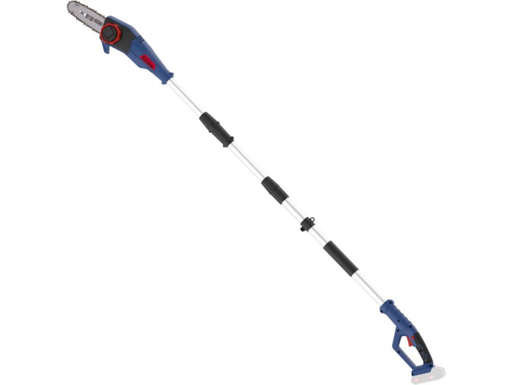 Akumulátorový odvetvovač so systémom batérie 18V E³. Rýchloupínací systém reťaze, integrovaná nádržka na olej, automatické mazanie reťaze, reťaz a lišta Oregon, teleskopická násada, Softgrip rukoväť, doraz, zachytávací čap reťaze, puzdro na reťaz pre skladovanie, popruh. Bez batérie a nabíjačky.
