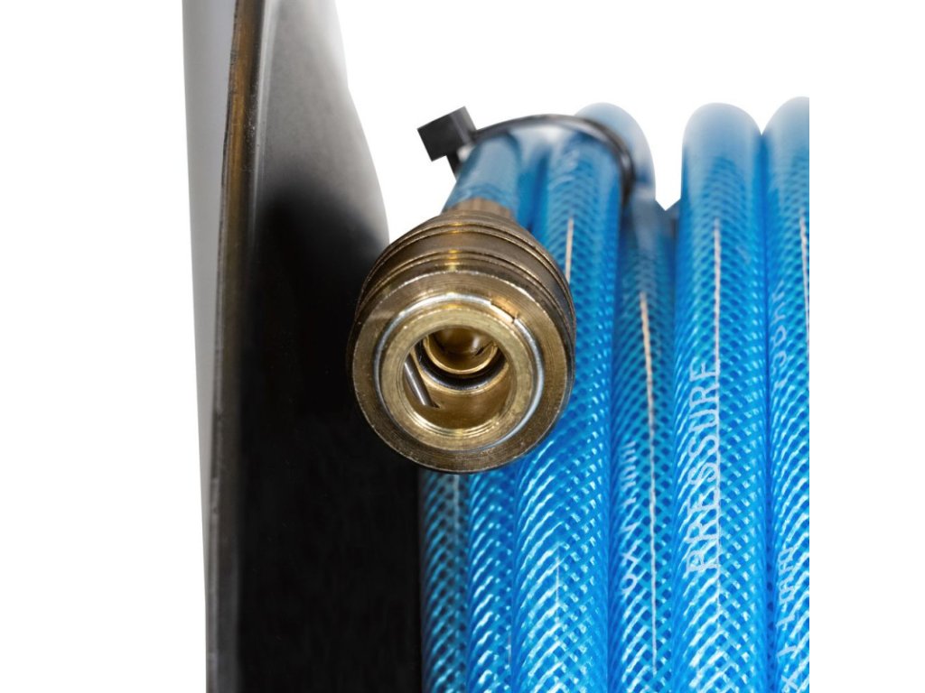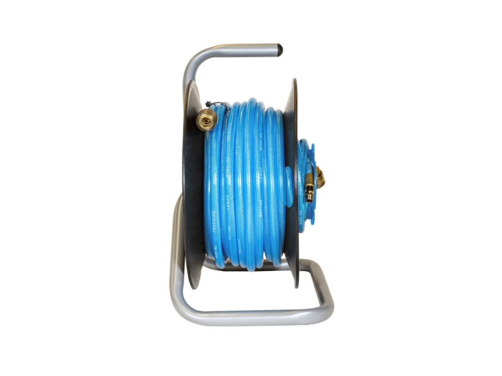 Navíjací bubon s 20-metrovou pneumatickou hadicou od výrobcu je optimálnym doplnkom k Vášmu kompresoru a zariadeniam na stlačený vzduch. Robustná 20-metrová PU hadica s prípojkami pripravenými na použitie pre maximálnu flexibilitu. Bubon je možné zablokovať pomocou brzdy. Hadica sa rýchlo a jednoducho navinie na bubon pomocou kľuky. Vysokokvalitný bubon na pneumatickú hadicu z nerozbitného plastu, nosný rám vyrobený z pevnej oceľovej rúrky. Axiálne pripojenie, 20-metrová hadica na stlačený vzduch s textilnou vložkou, spojovacia hadica, spojka na stlačený vzduch, zásuvná vsuvka, vrátane ochrany proti prekrúcaniu, bubnová brzda.