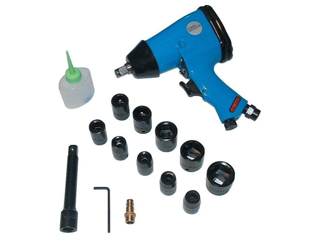 Výkonný rázový uťahovák s príklepom, určený pre montážne práce, uvoľňovanie/doťahovanie skrutiek kolies automobilov a podobne. Štvorstupňové nastavenie krútiaceho momentu, jednoduché prepínanie P/L chodu, prípojná vsuvka. Nástrčkové orechy, predlžovací adaptér, mini olejovač, plastový kufrík. Vsuvka: IG 1/4"Prevádzkový tlak: 6 barSpotreba vzduchu: 320 – 530 l/min.Otáčky pri voľnobehu: 8000 min-1Maximálny krútiaci moment: 100 / 170 / 240 / 310 NmHnací 4-hran: 1/2"Nástrčkové orechy 9-10-11-13-14-17-19-22-24-27 mmHladina akustického výkonu LWA: 95 dBRozmery (DxŠxV): 200 x 70 x 180 mmHmotnosť netto/brutto: 4,16 kg/4,3 kgDodatočné parametre