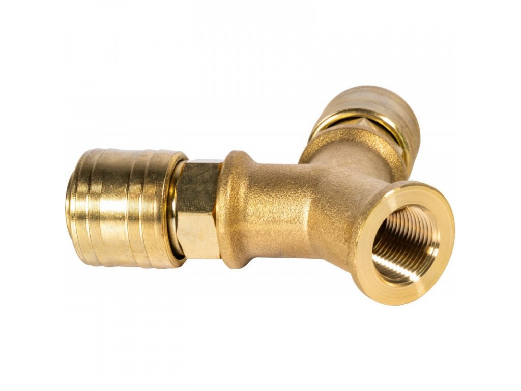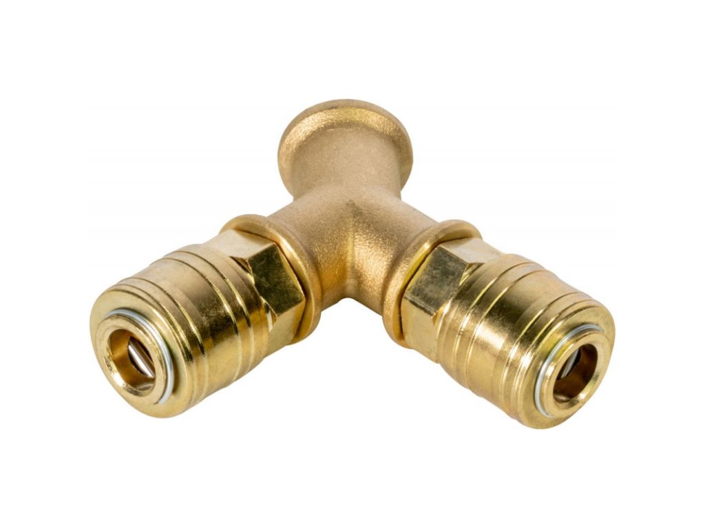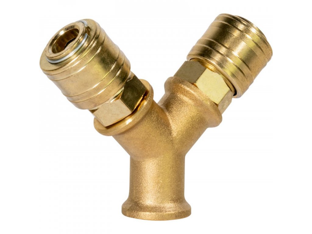 Mosadzný rozdeľovač s dvoma spojkami. V balení 1 ks.Prípojný závit: dvojsmerný 3/8" IGRozmery (DxŠxV): 95 x 75 x 25 mm Hmotnosť netto/brutto: 0,23 kg/0,254 kgDodatočné parametre