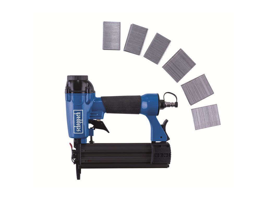🔩 Scheppach Pneumatická sponkovačka/klincovačka: 2v1 s bohatým príslušenstvom