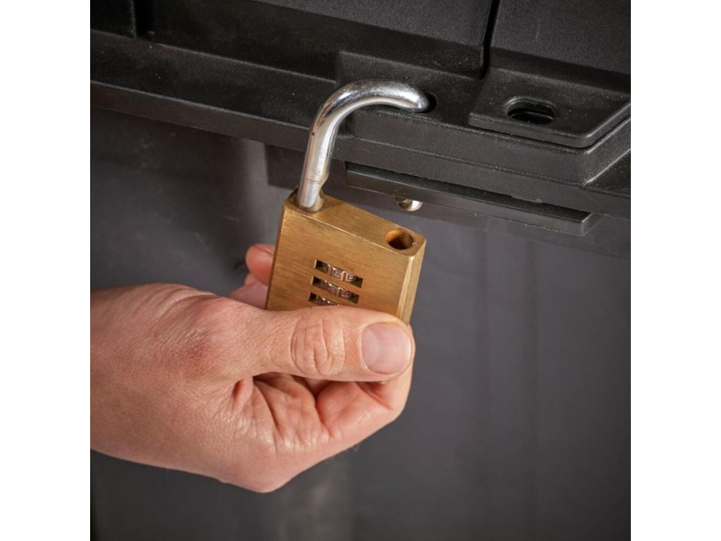 - Očko visiaceho zámku pre väčšiu bezpečnosť - hlavná truhlica aj veko s rýchlym prístupom sú uzamykateľné.