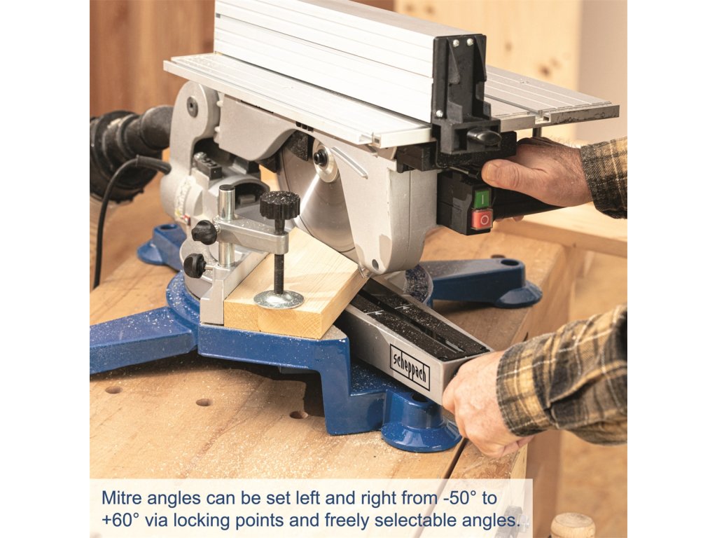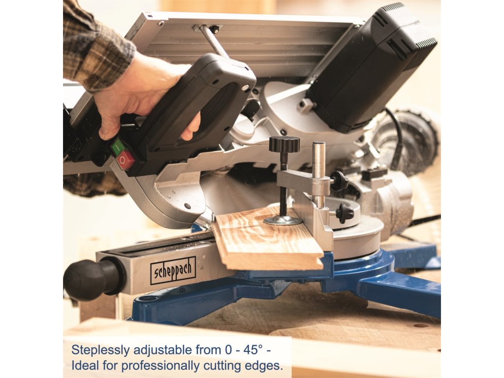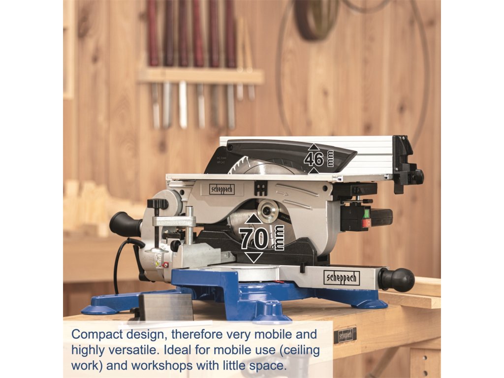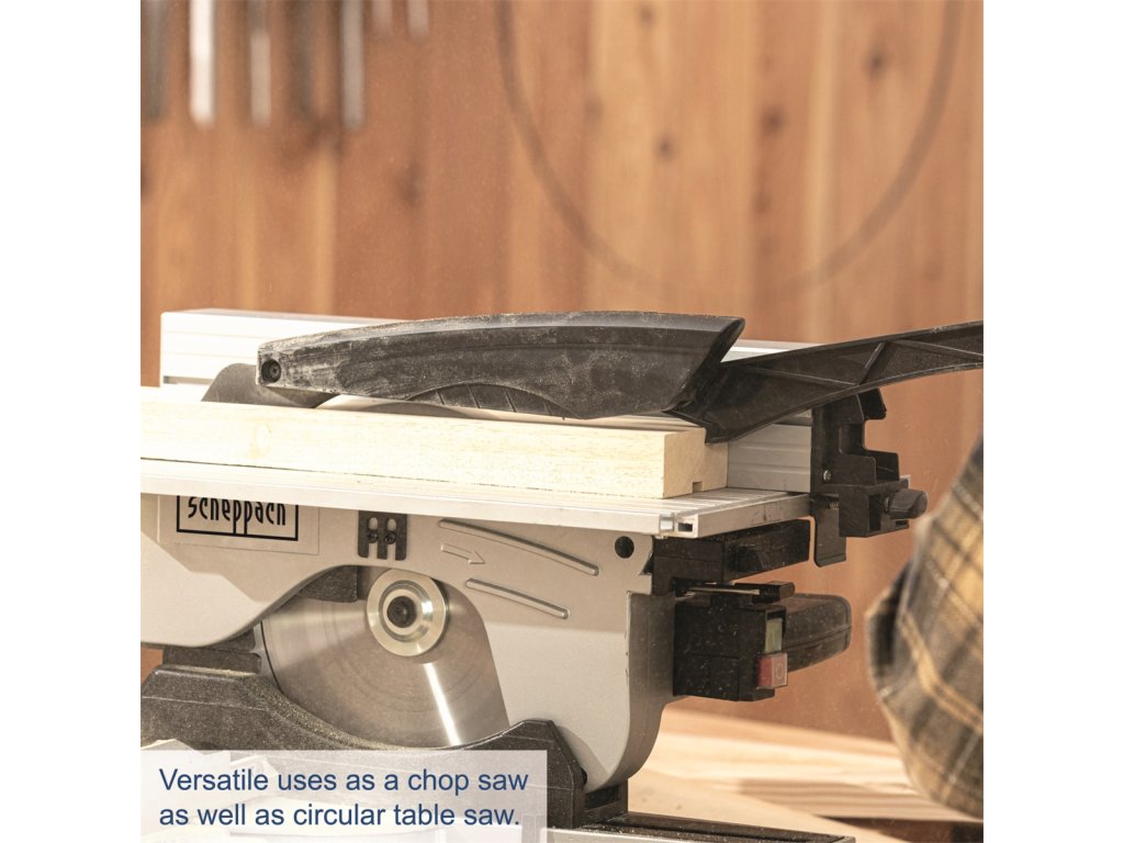 Kombinovaná pila Scheppach HM 100 T je víceúčelový stroj, který můžete během několika sekund předělat z běžné pokosové pily na malou stolovou pilu. Tím pádem se otevírá mnoho variant řezání, což je zajímavé jak pro řemeslníky, kteří nemusí převážet dva stroje, tak pro menší dílny, ve kterých je problém s dostatkem prostoru. Pila je postavena na velmi pevném rámu z lehké slitiny hliníku, který je nejenom velmi stabilní, ale zaručuje rovněž dostatečně tuhý základ pro přídavný stolek. Jelikož se stolek nijak nekroutí, pila umožňuje provádění i velmi přesných řezů. Standardně je stroj osazen kvalitním kotoučem s 60 zuby z tvrdokovu, který zajistí hladký a precizní řez bez otřepů. Výhodou pro řezání v tvrdších materiálech je i velmi silný motor o výkonu 1800 W a velký prořez při pokosovém řezání 70 mm. Kontaktní údaje výrobce / dovozce / zplnomocněného zástupce výrobce v EU: Scheppach GmbH Günzburger Str. 69, 89335 Ichenhausen, Germany email: service@scheppach.comDodatočné parametre