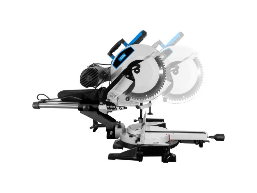 Radiálna kapovacia píla s remeňovým pohonom, radiálne vedenie uložené v guľôčkových ložiskách, široký pracovný stôl, vysoký hliníkový doraz, s laserovým vedením pre presnú prácu, obojstranne otočná pílová hlava, svorka na uchytenie obrobku. Vrecko na zachytávanie triesok na zníženie tvorby prachu pri rezaní. Prípojka na odsávacie zariadenie, s ochranou počas prepravy a rukoväťou na prenášanie.