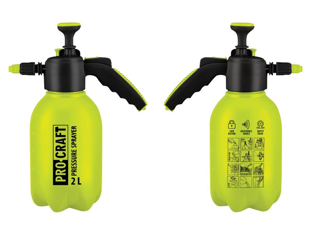 Ruční tlakový postřikovač Procraft HS-2 Objem nádrže 2 l Kovová postřikovací trubice. Postřikovač je vyroben z kvalitních materiálů, které pod tlakem nepraskají. Je vybaven gumovým těsněním, které má větší odolnost než standardně dodávané silikonové těsnění. V balení jsou náhradní vyměnitelné trysky, praktický zádový popruh, těsnící kroužky a komfortní spouštěcí pistole. Nádoba postřikovače je průsvitná, takže při práci vidíte objem kapaliny.