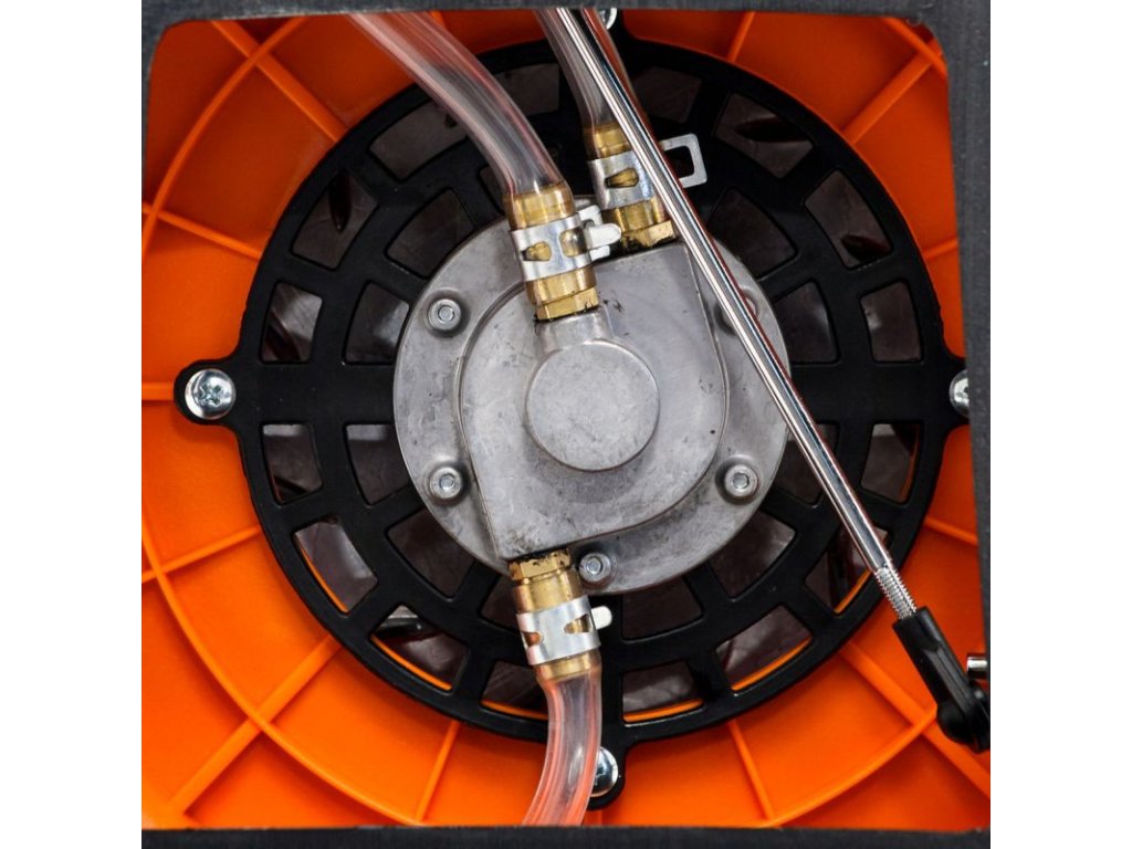 Tlaková pumpa, ktorou je rosič RURIS A103S vybavený , umožňuje rozprašovanie pri 90 stupňoch a kontrolovaný tlak prúdu roztoku.
