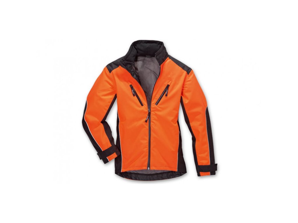 Excelentne priedušná bunda s fantastickou vodeodolnosťou. Tepelne zapečatené spoje a vodeodolné zipsy. Dlhé ventilačné otvory pod pažami. Veľké refl exné logo STIHL na chrbte. Nastaviteľný jemný golier so skladacou kapucňou.- Robustná vonkajšia látka s priedušnou membránou