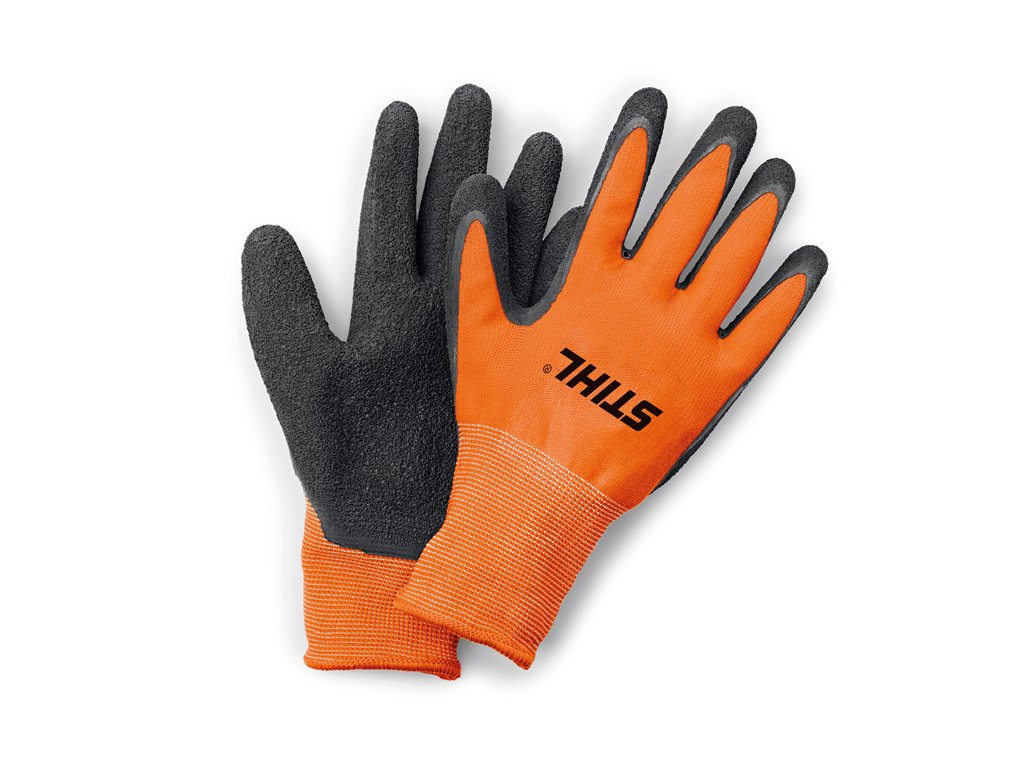 elastická manžeta, priedušné, pevný úchyt aj vo vlhkom prostredí. Materiál: plátno, napustené latexom, EN 388 a EN 420. Vysoká odolnosť proti opotebeniu.