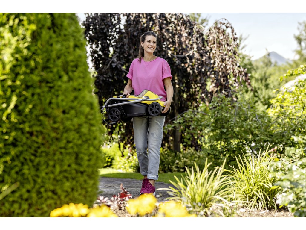 Ľahká a obratná: akumulátorová kosačka na trávu LMO 2-18 Battery Set je so šírkou záberu 32 cm ideálna pre menšie trávniky s rozlohou do 250 metrov štvorcových. Výšku kosenia je možné nastaviť na jednu z piatich úrovní v rozsahu od 25 do 60 mm. V kombinácii s výkonným bezuhlíkovým motorom je tráva vždy precízne pokosená. Pri kosení pozdĺž okrajov alebo okrajov hrebene na trávnik narovnávajú steblá trávy a zabezpečujú tak, aby sa nič nevynechalo. Pokosená tráva sa zhromažďuje v 30-litrovom zbernom koši. Výškovo nastaviteľná vodiaca rukoväť zaisťuje vzpriamené a pohodlné držanie tela pri kosení a skladací dizajn umožňuje priestorovo úsporné skladovanie. Prepravnú rukoväť je možné použiť aj na prenášanie ľahkej akumulátorovej kosačky všade tam, kde je to potrebné, napríklad hore a dole po schodoch. Jedna batéria a rýchlonabíjačka sú súčasťou balenia.Dodatočné parametre
