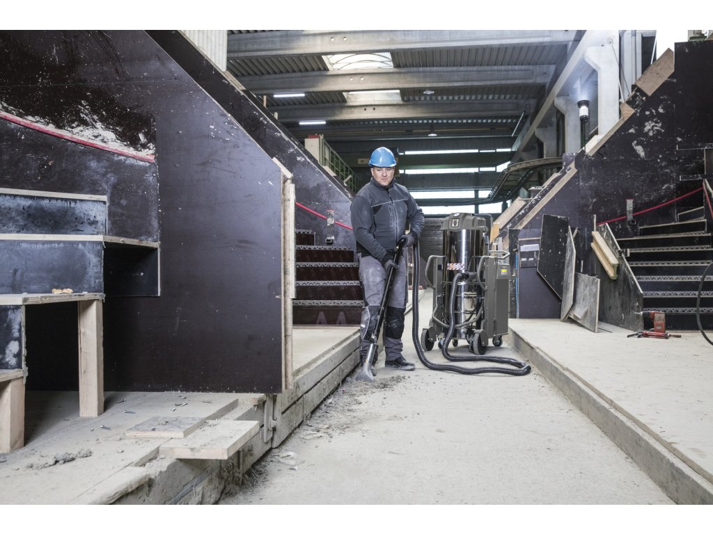 Tak na mobilné ako aj na stacionárne nepretržité používanie sa hodí náš priemyselný vysávač triedy super IVS 100/55 M určený hlavne na vysávanie veľmi veľkých množstiev zdraviu škodlivého jemného prachu. Tento vysávač s certifikátom pre prachovú triedu M a hospodárnou prevádzkou (IE2) presviedča aj svojím silným trojfázovým motorom a výkonnou 5,5 kW radiálnou vývevou. Vďaka jemnému nábehu je bez problémov možná aj prevádzka na bežnej 16 A priemyselnej zásuvke. O maximálnu mobilitu. sa pritom starajú aj rôznorodé možnosti odkladania príslušenstva. Veľký hviezdicový filter s 16 záhybmi šetrí miesto a spoľahlivo sa čistí pomocou horizontálneho oklepu. Prevodovka pritom zaručuje optimálny výsledok čistenia – nezávisle od vynaloženej sily, a teda veľmi komfortne pre používateľa.. Mechanizmus na skladanie 100 l antikorovej nádoby uľahčuje používateľovi jej vyprázdňovanie. Aj alternatívne diaľkové ovládanie na zapínanie a vypínanie stroja zo vzdialenosti až 30 metrov podčiarkuje pohodlnú obsluhu IVS 100/55 M.Dodatočné parametre