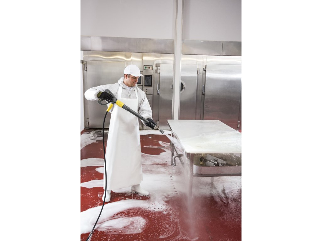 Prietokový ohrievač vody Kärcher je výkonný elektrický vysokotlakový generátor teplej vody, ktorý okamžite ohrieva vodu pod vysokým tlakom, čím zabezpečuje konštantnú teplotu. Je ideálny pre stacionárne vysokotlakové čističe s prietokom vody do 1300 l/h a tlakom do 210 bar, ale možno ho použiť aj pre mobilné stroje. Inštalácia na vysokotlakovej strane vysokotlakového stroja je rýchla a jednoduchá. Ohrievač vody má vykurovací výkon 42 kW a spotrebúva elektrickú energiu len vtedy, keď je potrebná teplá voda. Vďaka tomu je mimoriadne šetrný k životnému prostrediu, pretože na rozdiel od olejových alebo plynových horákov nevznikajú žiadne výfukové plyny. Navyše nemá otvorený oheň, vďaka čomu je ideálny na použitie na miestach, kde nie sú povolené horáky. Pri prietoku vody 13 l/min (800 l/h) sa teplota vody zvýši o 45 °C. Maximálna dosiahnuteľná teplota je 95 °C s teplotou prívodu vody 50 °C. Stroj je ľahko ovládateľný a obzvlášť robustný, pretože rám a kryt, ako aj elektrická vykurovacia špirála sú vyrobené z nehrdzavejúcej ocele.Dodatočné parametre