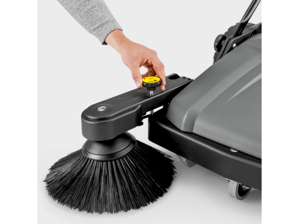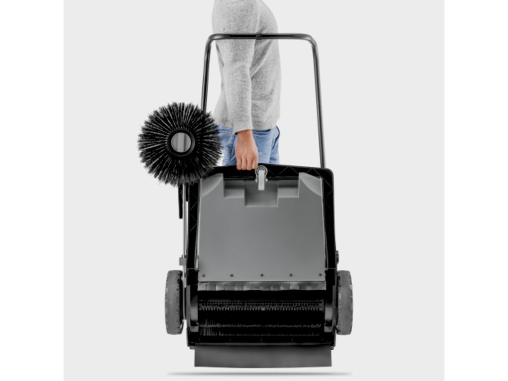 S kompaktným ručným zametacím strojom KM 70/15 C 2v1 Classic sa dajú ľahko a pohodlne vyčistiť všetky vnútorné aj vonkajšie priestory. Pri čistení plôch s rozlohou 100 metrov štvorcových a viac je to oveľa efektívnejšie ako metla. Jeho nízka hmotnosť a nízky valivý odpor kolies uľahčujú manévrovanie a prepravu. Zametací valec je poháňaný ľavým kolesom, čo zaisťuje spoľahlivý transport odpadu do zametacie nádoby. Bočná kefa je určená na zametanie hrán a rohov. Pri čistení otvorených priestorov ho možno zložiť, aby sa znížilo nežiaduce vytváranie prachu. Bočná kefa sa dá nastaviť, aby sa predišlo opotrebovaniu. Pri výmene kefy nie sú potrebné žiadne nástroje. Nádobu na odpad je možné okamžite vybrať a vyprázdniť. Predná časť nádoby je tvarovaná tak, že ju možno v prípade potreby položiť vo vzpriamenej polohe. Sklápacia rukoväť sa dá prispôsobiť výške operátora a dá sa úplne sklopiť pre priestorovo úsporné skladovanie. Bočná tvrdá kefa navyše je súčasťou výbavy.Dodatočné parametre