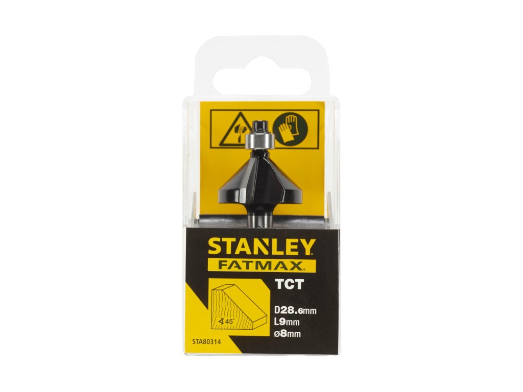Fréza do dreva obrys. uhl. TCT/HM pr.28,6x9mm, sklon 45°, stopka pr.8mm, s vodiac. ložiskom FATMAX