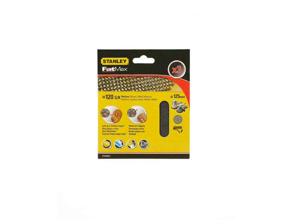 Mriežka brúsna na excent.brúsku, pr.125mm P120, suchý zips, 3ks FATMAX