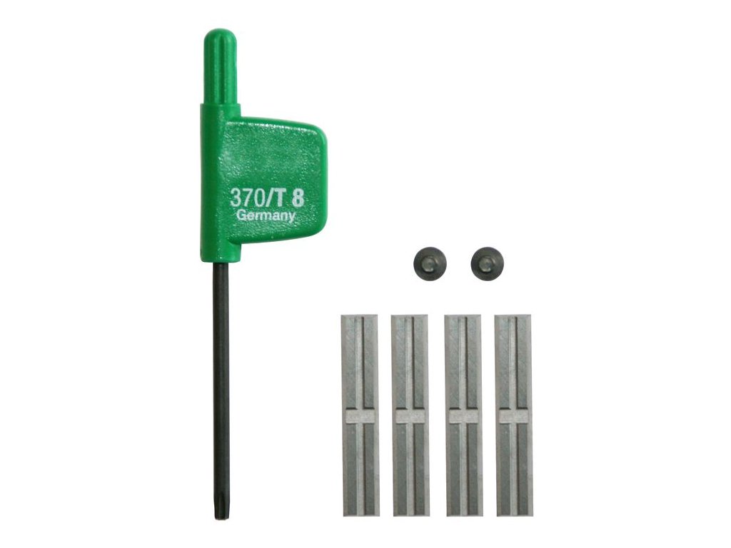 rozsah dodávky: | kľúč TX T8, 2 x skrutky so zápust. hlavou, 4 x vymeniteľná platnička |
