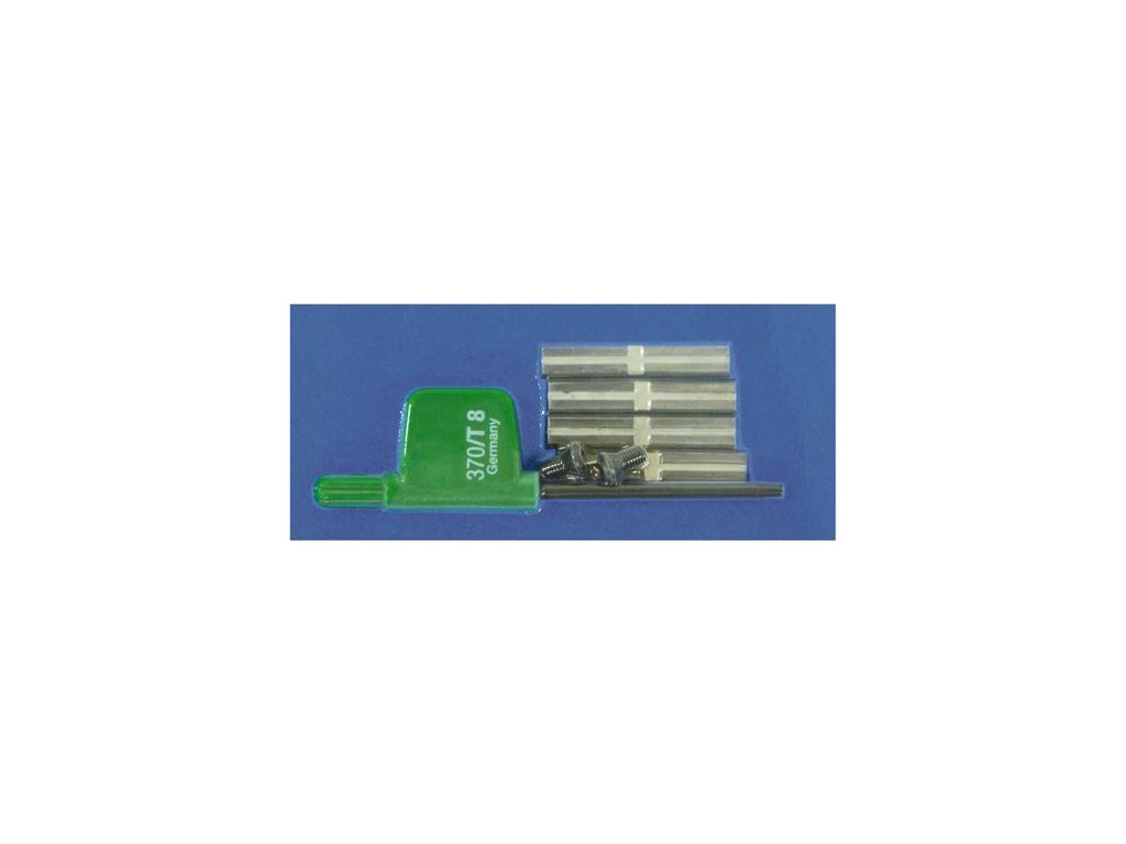 kľúč TX T8, 2 x skrutky so zápust. hlavou, 4 x vymeniteľná platnička, balenie pre samoobslužný predaj