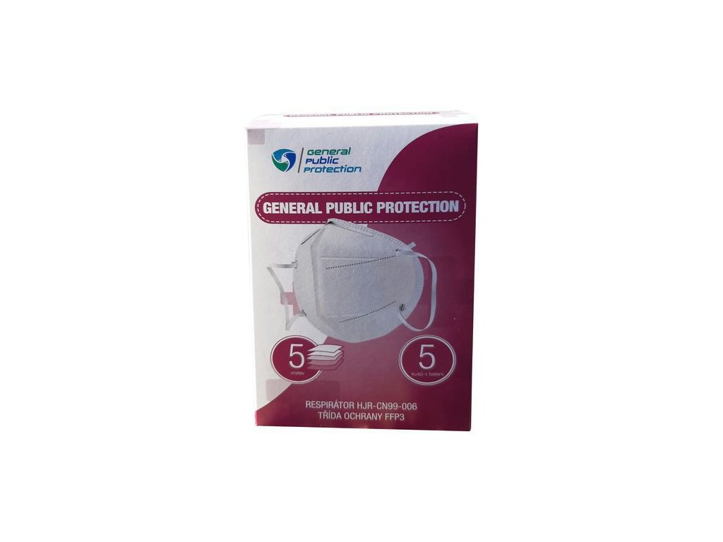 - Respirátor s triedou ochrany FFP2 NR General Public Protection s viac než 95% filtračnou účinnosťou proti prachu, baktériam a vírusom