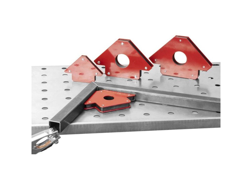 Štvordielna súprava magnetov na zváranie je užitočným pomocníkom pre jednoduchú a bezpečnú fixáciu obrobkov pri všetkých bežných zváračských prácach a procesoch. Rôzne uhly magnetov umožňujú zváračovi bezpečne udržať príslušný obrobok v požadovanej polohe a vopred spojiť bodovými zvarmi.