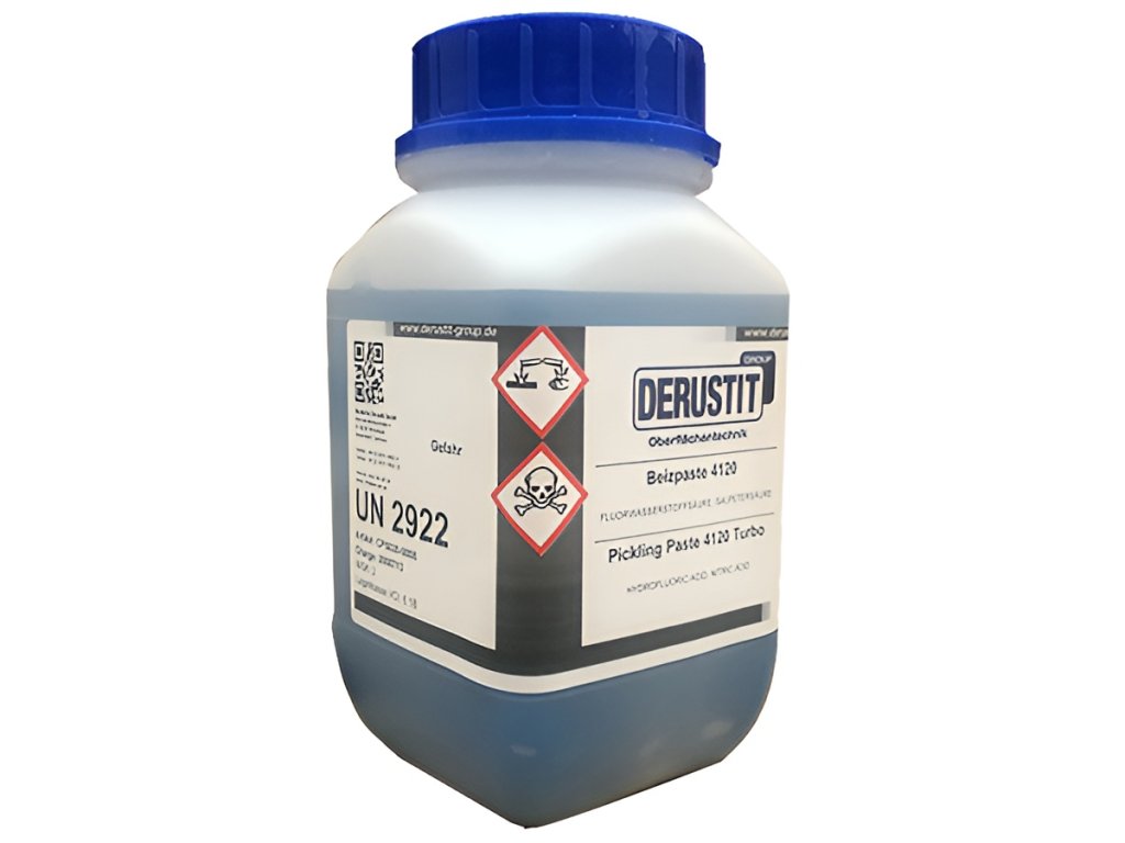 Moriaca pasta Derustit 4120T je vysoko účinný prostriedok na odstránenie nečistôt, oxidačných povlakov a nábehových sfarbení z povrchov zvarových švov a ich okolia na nehrdzavejúcich oceliach. Táto pasta je ideálna na použitie na zvarové švy a iné tepelne spracované zóny na nerezových oceliach, vrátane vysokoleštených povrchov.