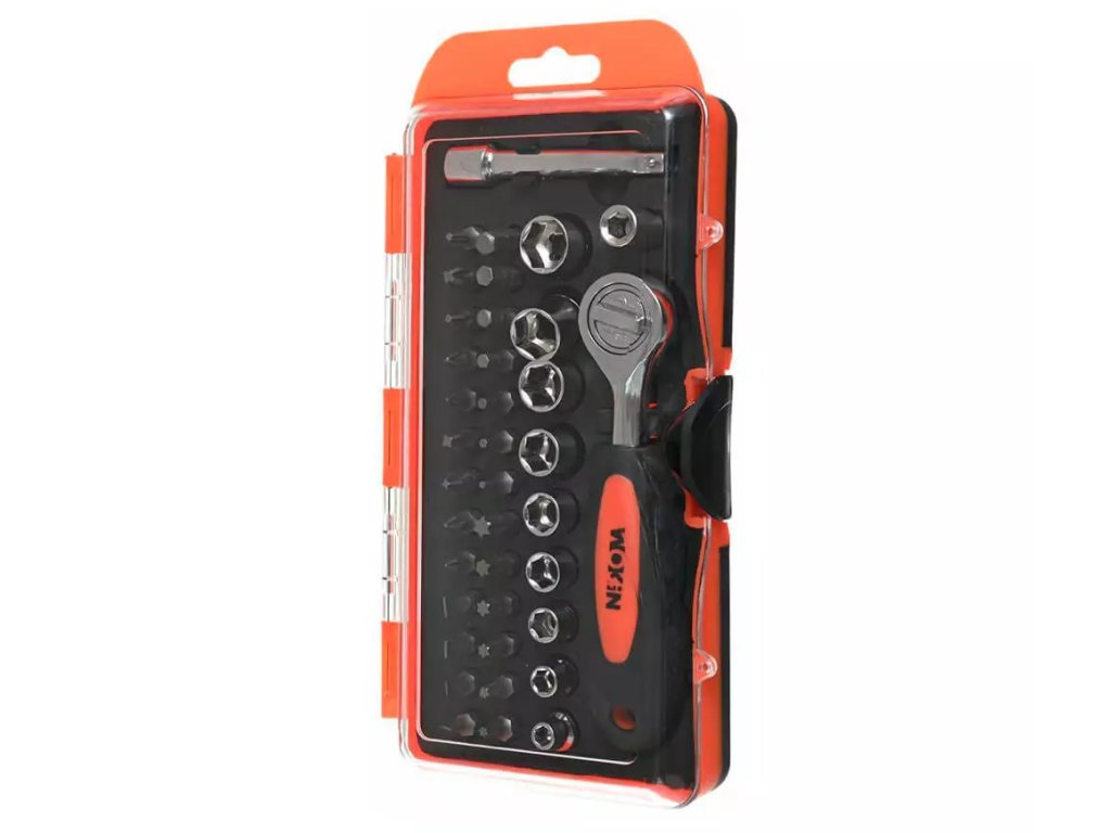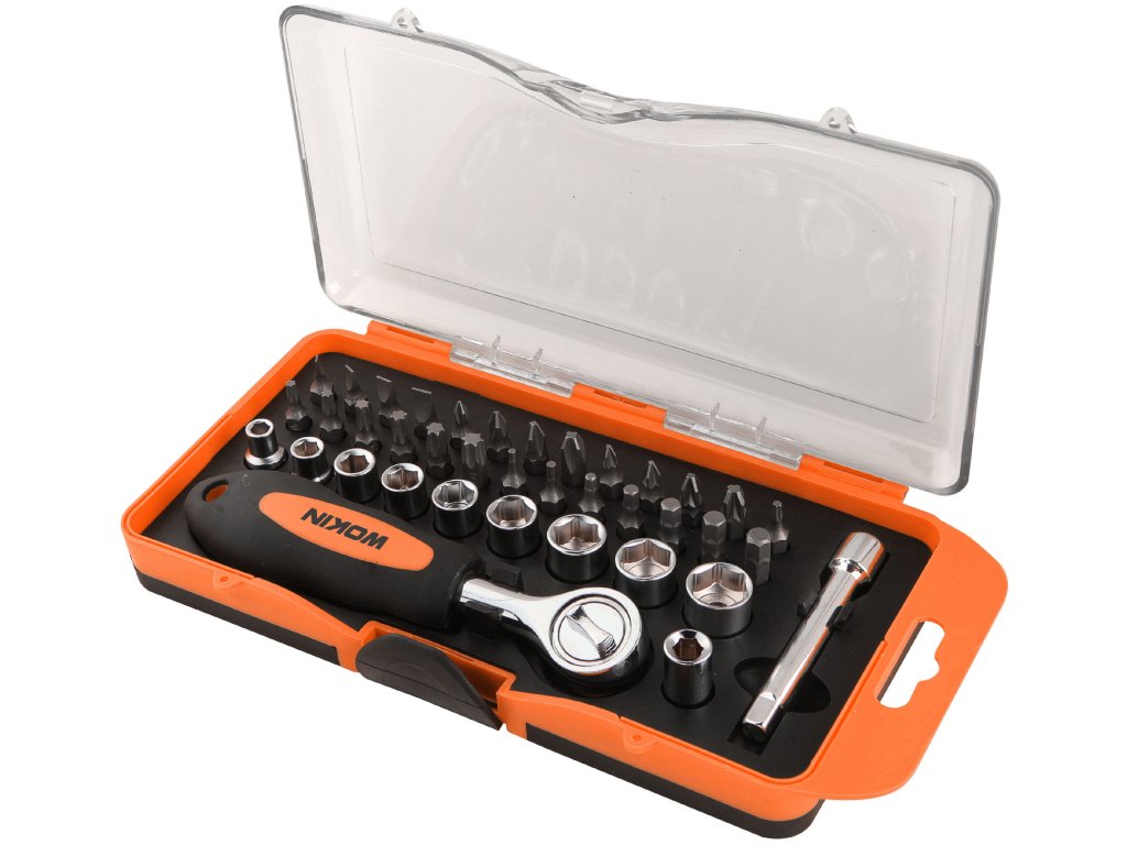 Sada bitov a nástrčných kľúčov WOKIN (38-dielna) je nevyhnutným pomocníkom do každej dielne, či už sa domácim opravám, alebo odbornej montážnej práci. Táto univerzálna sada poskytuje širokú škálu možností na skrutkovanie a upevňovanie rôznych druhov spojovacích materiálov. S deviatimi 1/4" nástrčnými kľúčmi s veľkosťami od 5 mm po 13 mm pokryjete bežné veľkosti skrutiek a matíc, ktoré sa používajú v rôznych priemyselných aj domácich aplikáciách.