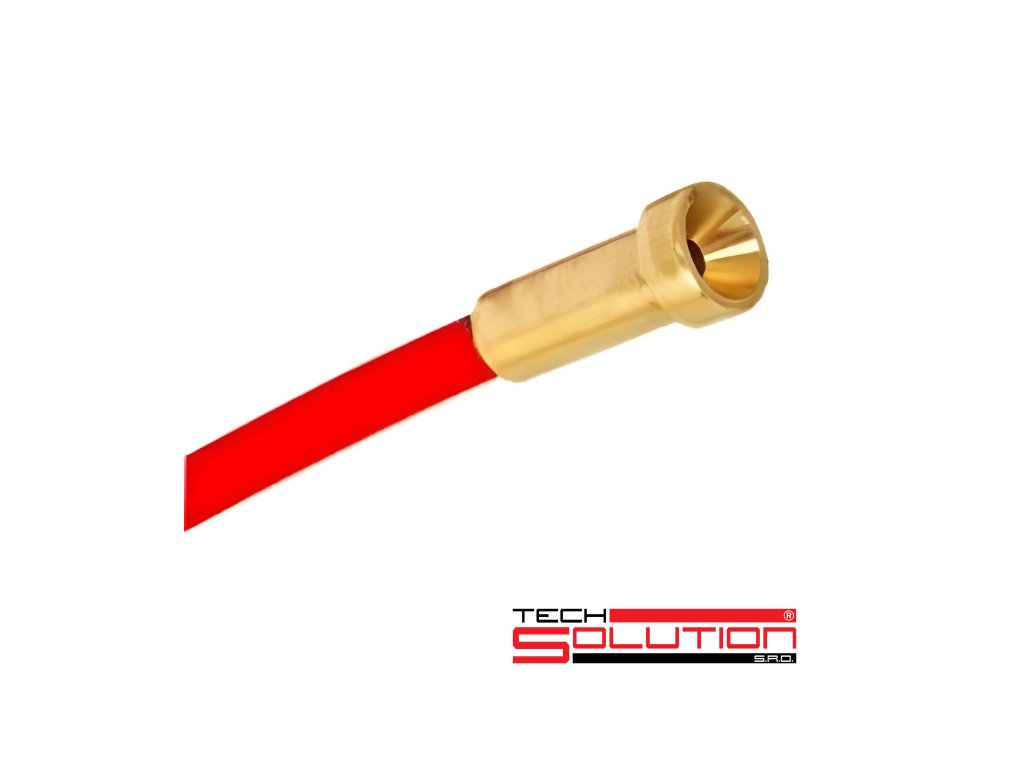 Oceľový Bowden v červenej farbe s vonkajším priemerom Ø 4 mm a vnútorným priemerom Ø 2 mm od značky SOLUTION.