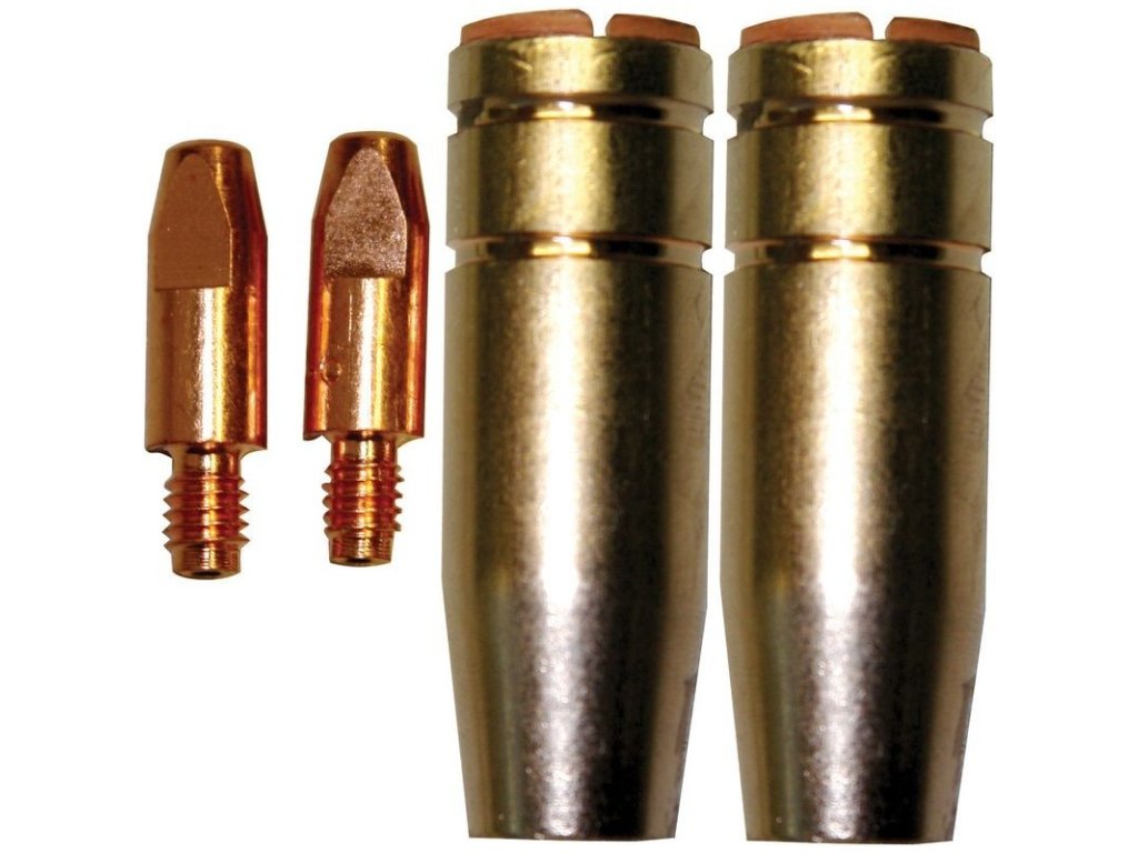 Dve kónické trysky na plyn a dve prúdové trysky 0,8 mm. Závit M6. Vhodné ku Zváraciemu káblu 4 m s horákom TBI 250/MB 25 (kód tovaru: 41150) a ku Zváraciemu káblu 4 m MB15/TBI150 (kód tovaru: 41148).Rozmery (DxŠxV): 54 x 22 x 22 mmHmotnosť netto/brutto: 0,12 kg/0,141 kgDodatočné parametre