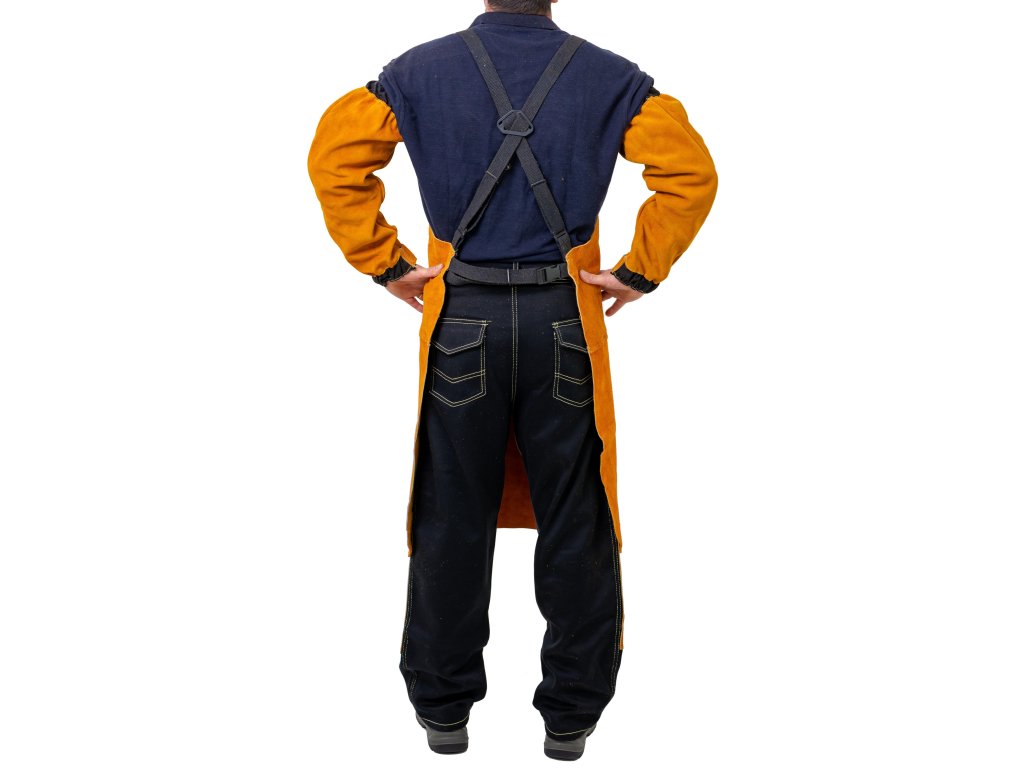 Zváračská kožená zástera je vybavená nastaviteľným ramenným popruhom a nastaviteľným pásom s plastovou rýchlosponou, čo umožňuje pohodlné a presné prispôsobenie zástery vašim potrebám. Týmto spôsobom budete mať istotu, že zásteru môžete nosiť tak, aby vám dokonale sedela a chránila.