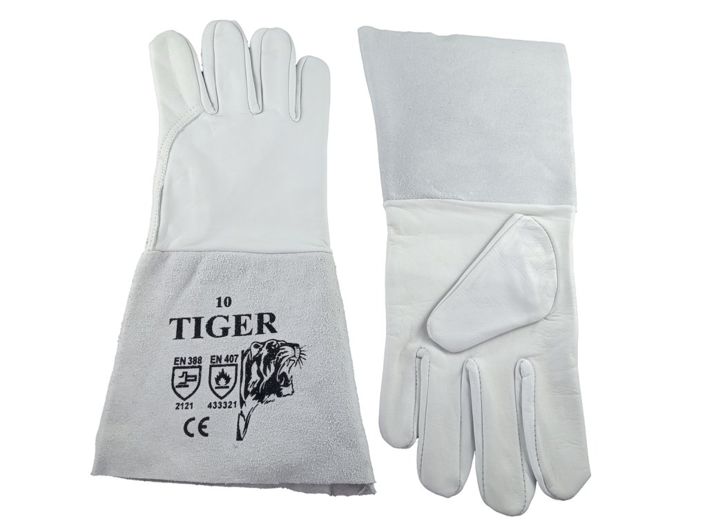 Ochranná manžeta v dĺžke 14 cm: Rukavice TIGER sú vybavené ochrannou manžetou, ktorá sa rozprestiera do dĺžky 14 cm. Táto manžeta zabezpečuje ochranu pred nebezpečenstvami v oblasti zápästia a predlaktia, čo je obzvlášť dôležité pri zváracích prácach.