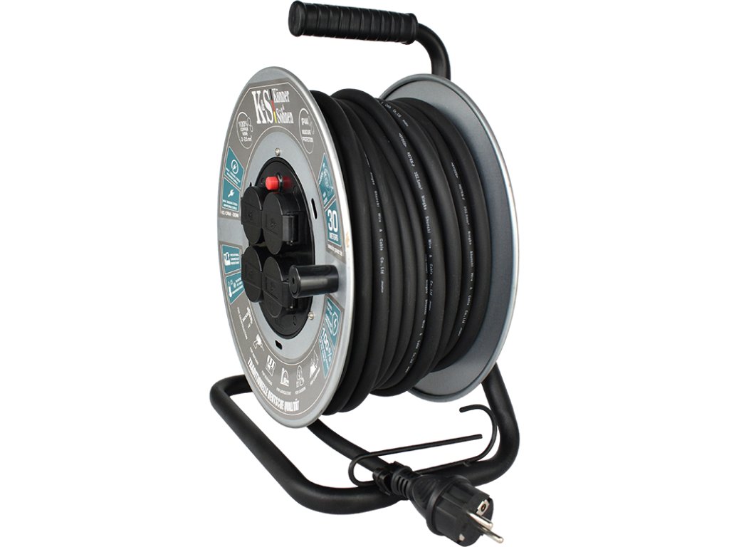 Prodlužovací kabel na navijáku má délku kabelu 30 metrů a je vhodný pro vzdálené připojení 4 elektrických spotřebičů současně. Může být použit pro stavební a opravárenské práce, zemědělský průmysl, továrny a sklady. Je spolehlivým asistentem při kempování a na venkově.