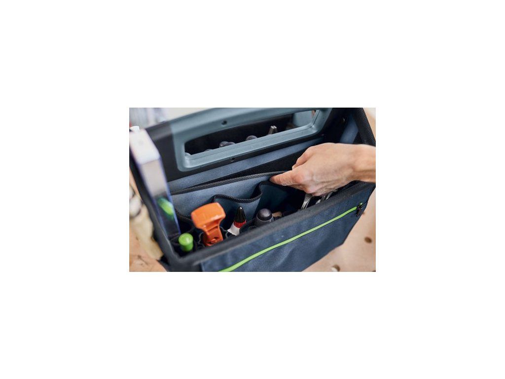 V mnohých praktických priehradkách ToolBagu bude ručné náradie, nástroje a príslušenstvo uložené a prepravované prehľadne. Odolné vnútorné vrecká sa dajú umiestňovať jednotlivo a umožňujú individuálne vybavenie.