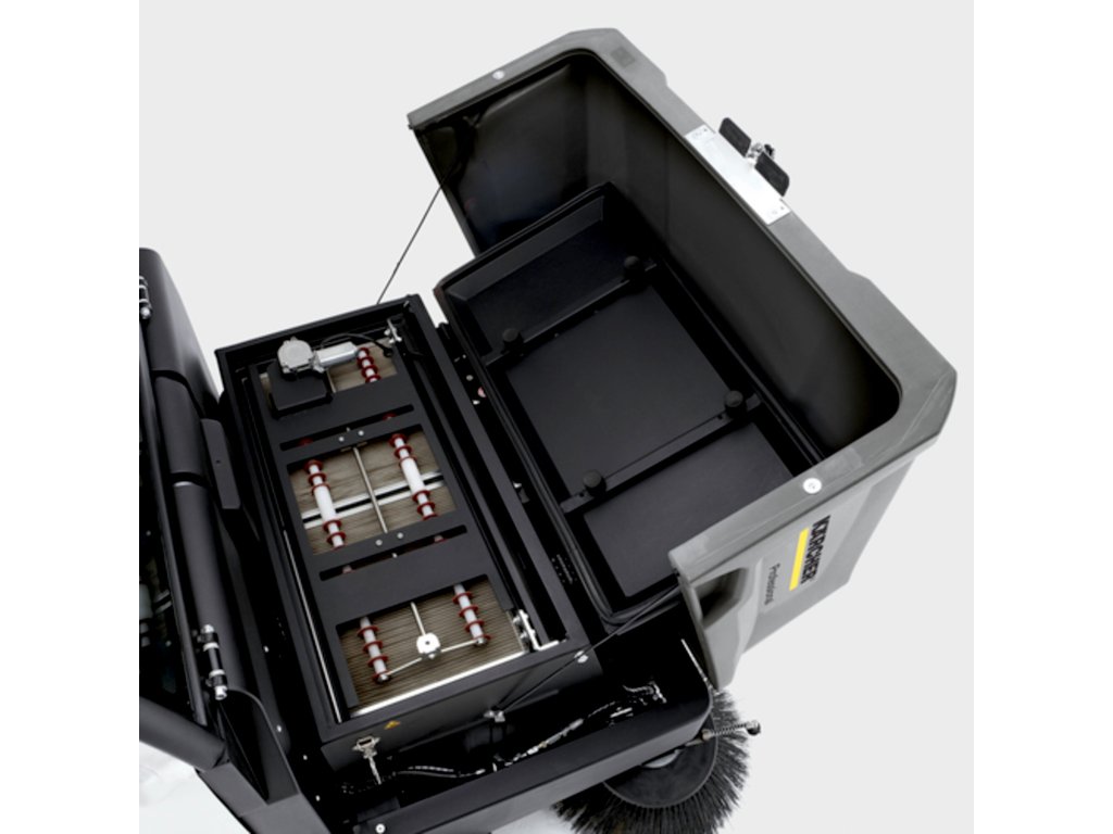 Robustný, plne hydraulický priemyselný zametací stroj s pohonom na batérie a bez emisií KM 130/300 R Bp sa hodí na extrémne použitie napr. vo výrobe stavebného materiálu, kovovýrobe, zlievarenstve a iných odvetviach náchylných na znečisťovanie. Vďaka zametaniu na princípe lopatky na smeti sa spoľahlivo pozbiera jemná aj veľká špina. Zametací valec sa automaticky prispôsobuje nerovnostiam podlahy a inovačný zametací systém znižuje opotrebovanie na minimum. Hlavný zametací valce dá rýchlo vymeniť bez použitia náradia. Pri prepravnej jazde sa nádoba na odpad automaticky uzavrie. Dva vodorovne zabudované ploché skladané filtre sa aj pri silnej prašnosti postarajú o čistý vzduch. Oklep filtra sa vykoná stlačením tlačidla pomocou maximálne efektívneho duálneho stierača. Filter je veľmi dobre prístupný a jeho výmena je jednoduchá a bez náradia. A aj motor je dobre dosiahnuteľný. Základné funkcie sa vďaka konceptu EASY Operation ovládajú pohodlne pomocou otočného gombíka.Dodatočné parametre