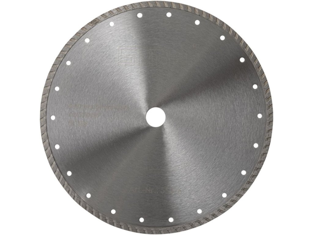 Diamantový segmentový rezný kotúč na rezanie kameňa, žuly a podobne. Vhodný ku Radiálnej rezačke obkladov RFS 300 (kód tovaru: 55376).