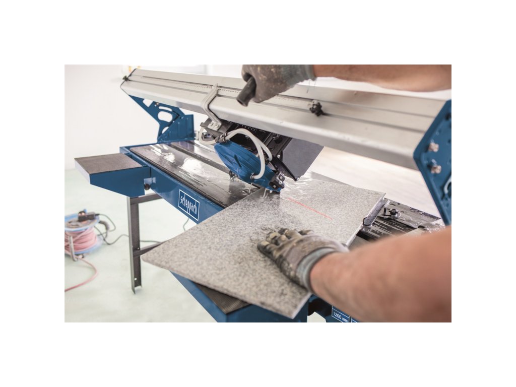 Scheppach FS 4700 je výborným pomocníkem všech řemeslníků nebo náročných kutilů pracujících často s obklady či dlažbou velkého formátu. Silný indukční motor 1200 W s tepelnou ochranou si hravě poradí s řezáním dlažby, obkladaček, kabřincových obkladaček, žuly, mramoru apod. Zásadní výhodou je velká délka řezu 1200 mm, což této řezačce umožňuje pracovat i s velmi oblíbenými velkoformátovými dlaždicemi až do rozměru 848 x 848 mm. Pro práci s velkými formáty se skvěle hodí i dva posuvné rozšiřovací stolky. Průměr kotouče 230 mm redukuje vibrace a spolu s precizním vedením na dvou vodičích umožňuje maximálně přesný a čistý řez o hloubce až 40 mm. Ten je podmíněn i velmi robustní celokovovou konstrukcí stroje i podstavce a přesným nastavitelným laserem. Řezačka umožňuje řezy na pokos a na dvojí pokos a rovněž ponornou funkci. Stůl je vybaven přesnou milimetrovou stupnicí, úhlovým dorazem a podélným dorazem. Chlazení řezného kotouče vodou a bezprašnou práci zajišťuje integrované čerpadlo. Výhodou je i velká jímka na vodu o objemu 40 l. Stroj je vybaven nejmodernější bezpečnostní ochranou proti úrazu elektrickým proudem a rovněž zásuvka je vybavena proudovým chráničem. Pro snadný transport je stroj vybaven kolečky a skládacím podstavcem. Kontaktní údaje výrobce / dovozce / zplnomocněného zástupce výrobce v EU: Scheppach GmbH Günzburger Str. 69, 89335 Ichenhausen, Germany email: service@scheppach.comDodatočné parametre