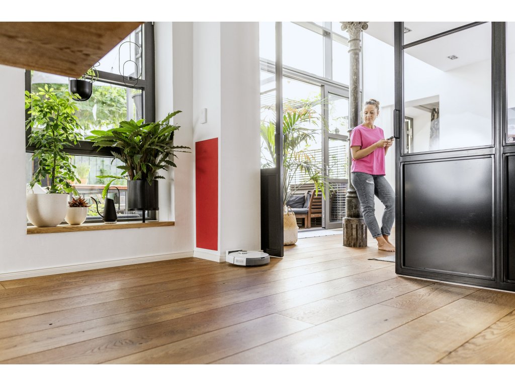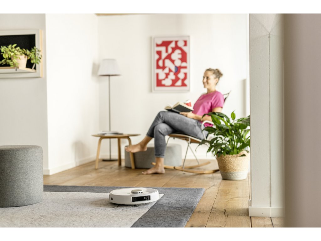 Inteligentný čistiaci robot RCV 5 čistí tvrdé podlahy a koberce s nízkym vlasom samostatne a systematicky. Vďaka kombinácii rotačnej kefy, bočnej kefy a silného vysávania odstraňuje suché nečistoty, zatiaľ čo v režime mopovania sa automaticky vyhýba kobercom. Ovláda sa jednoducho cez aplikáciu s presným mapovaním miestností (LiDAR).