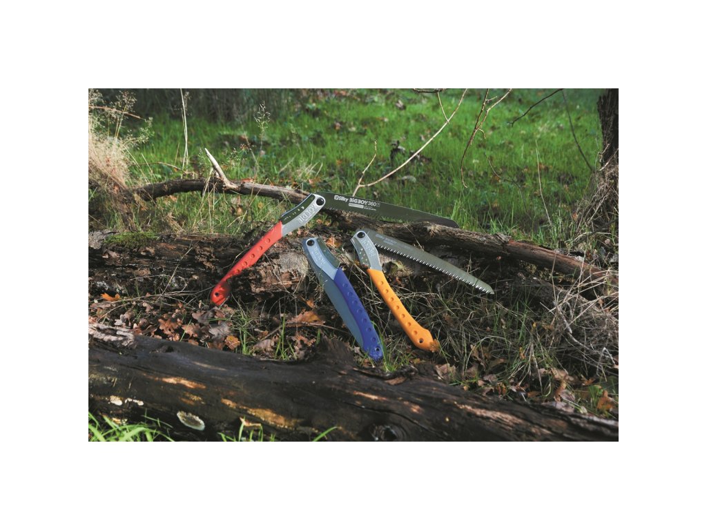 Bigboy 360-10 Jedná se o kompaktní, lehkou pilu, kterou si můžete pohodlně vzít s sebou do batohu na víkendový výlet, či do pracovních míst, kde je zakázáno používat motorové pily a kde potřebujete velký řezný výkon. Vlastnosti Mimořádně silný 360 mm pilový list s prořezem 1,7 mm je plně odolný proti venkovním podmínkám. Čepel je osazena středně velkými zuby ostrými jako břitva, díky kterým nebudete mít problém přeříznout i kmeny o průměru až 18 cm. Tento model navíc zanechává kvůli většímu počtu menších zubů hladší řezy. Pila je tedy vhodná i na ořezávání vzrostlejších zahradních dřevin. Pilu lze jednoduše složit a rozložit pomocí aretačního tlačítka, které zároveň dovoluje uživateli nastavit 2 různé polohy řezání. Gumová rukojeť pak zajišťuje bezpečný a pohodlný úchop a je dostatečně velká na to, abyste jste mohli pilu používat oběma rukama. Pro větší praktičnost je v rukojeti přítomen otvor, který umožňuje k pile připevnit karabinu nebo lano. Série Bigboy Série skládacích pil Bigboy představuje zlatou střední cestu mezi velikostí a řezným výkonem. Tyto pily si tedy můžete bez problémů přibalit sebou do batohu a zároveň máte vždy při ruce nástroj, který Vás nenechá ve štychu. Firma Silky moc dobře ví, že různé situace vyžadují různé způsoby řešení a tak jsou pily série Bigboy dodávány ve čtyřech barevně rozlišených provedeních: Žlutá - Bigboy 2000 Curve 360-6.5 ( zahnutá čepel; extra agresivní záběr; 6,5 zubů na 30 mm ) Červená - Bigboy 360-7 ( rovná čepel; velmi agresivní záběr; 7 zubů na 30 mm ) Černá - Bigboy 360-10 ( rovná čepel; středně agresivní záběr; 10 zubů na 30 mm ) Modrá - Bigboy 360-13 ( rovná čepel; jemný záběr; 13 zubů na 30 mm ) Všechny čepele jsou však mezi pilami navzájem vyměnitelné. Je tak možné si dokoupit pouze samotnou čepel, plochým šroubovákem povolit hlavní pojistý šroub a nakonfigurovat si pilu pro aktuální typ použití. Údržba pily Pro zachování účinnosti je nutné udržovat čepel v čistotě. Pokud je tedy ostří zalepeno pryskyřicí, či mízou, použijte k čištění olivový olej. Jedná se o účinný a ekologický způsob, jak rozpustit tyto nečisoty. Pokud pilu déle nepoužíváte, dbejte na to, aby byla vždy suchá. Případné bezpečnostní pokyny, výstrahy a upozornění jsou součástí návodu k obsluze. Kontaktní údaje výrobce / dovozce / zplnomocněného zástupce výrobce v EU: De Wild B.V. Spectrum 38, 4706 NM Roosendaal, Netherlands email: support@silky-europe.comDodatočné parametre