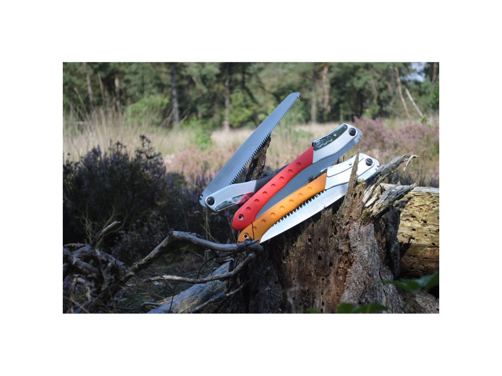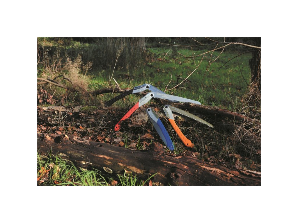 Bigboy 360-7 Jedná se o kompaktní, lehkou pilu, kterou si můžete pohodlně vzít s sebou do batohu na víkendový výlet, či do pracovních míst, kde je zakázáno používat motorové pily a kde potřebujete velký řezný výkon. Vlastnosti Mimořádně silný 360 mm pilový list s prořezem 1,7 mm je plně odolný proti venkovním podmínkám. Čepel je vybavena velkými agresivními zuby ostrými jako břitva, díky kterým nebudete mít problém během okamžiku přeříznout i kmeny o průměru až 18 cm. Pilu lze jednoduše složit a rozložit pomocí aretačního tlačítka, které zároveň dovoluje uživateli nastavit 2 různé polohy řezání. Gumová rukojeť pak zajišťuje bezpečný a pohodlný úchop a je dostatečně velká na to, abyste jste mohli pilu používat oběma rukama. Pro větší praktičnost je v rukojeti přítomen otvor, který umožňuje k pile připevnit karabinu nebo lano. Série Bigboy Série skládacích pil Bigboy představuje zlatou střední cestu mezi velikostí a řezným výkonem. Tyto pily si tedy můžete bez problémů přibalit sebou do batohu a zároveň máte vždy při ruce nástroj, který Vás nenechá ve štychu. Firma Silky moc dobře ví, že různé situace vyžadují různé způsoby řešení a tak jsou pily série Bigboy dodávány ve čtyřech barevně rozlišených provedeních: Žlutá - Bigboy 2000 Curve 360-6.5 ( zahnutá čepel; extra agresivní záběr; 6,5 zubů na 30 mm ) Červená - Bigboy 360-7 ( rovná čepel; velmi agresivní záběr; 7 zubů na 30 mm ) Černá - Bigboy 360-10 ( rovná čepel; středně agresivní záběr; 10 zubů na 30 mm ) Modrá - Bigboy 360-13 ( rovná čepel; jemný záběr; 13 zubů na 30 mm ) Všechny čepele jsou však mezi pilami navzájem vyměnitelné. Je tak možné si dokoupit pouze samotnou čepel, plochým šroubovákem povolit hlavní pojistý šroub a nakonfigurovat si pilu pro aktuální typ použití. Údržba pily Pro zachování účinnosti je nutné udržovat čepel v čistotě. Pokud je tedy ostří zalepeno pryskyřicí, či mízou, použijte k čištění olivový olej. Jedná se o účinný a ekologický způsob, jak rozpustit tyto nečisoty. Pokud pilu déle nepoužíváte, dbejte na to, aby byla vždy suchá. Případné bezpečnostní pokyny, výstrahy a upozornění jsou součástí návodu k obsluze. Kontaktní údaje výrobce / dovozce / zplnomocněného zástupce výrobce v EU: De Wild B.V. Spectrum 38, 4706 NM Roosendaal, Netherlands email: support@silky-europe.comDodatočné parametre