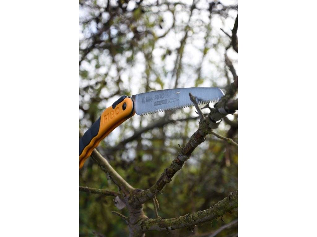 Silky F180 je kompaktní a lehká japonská tahová pila, která si získala oblibu pro svou spolehlivost, výkon a atraktivní cenu. Díky své konstrukci je ideální volbou pro domácí zahradníky, arboristy i všechny, kteří hledají kvalitní nástroj na běžné prořezávací práce. Vlastnosti Pila disponuje tuhou čepelí o délce 180 mm, která je osazena jemnými ostými zuby v počtu 14 na 3 cm. I přes to si snadno poradí s čerstvým i suchým dřevem. Kompaktní délka čepele navíc umožňuje řezat efektivně i v hustých porostech, kam byste se s větší pilou měli problém dostat. Signaturní vlastnost Silky pil, tedy řez v tahu, pak celkově minimalizuje námahu, snižuje vibrace a zanechává velmi hladký a čistý řez, ze kterého se strom snadno zotaví. Pomocí aretačního tlačítka u hlavního kloubu lze pilu složit do 2 různých poloh. Nástroj si tak můžete přizpůsobit aktuálním podmínkám. Pohodlná rukojeť je vyrobena z polypropylenu a má pryžovou vložku, která absorbuje vibrace. Otvor v rukojeti pak umožňuje připevnění lanka nebo karabiny. Při složení pily jsou zuby dokonale chráněny před vnějšími mechanickým vlivy a zároveň nepoškozují okolní věci, takže lze pilku v klidu sbalit do batohu nebo vložit do kapsy u kalhot.Dodatočné parametre