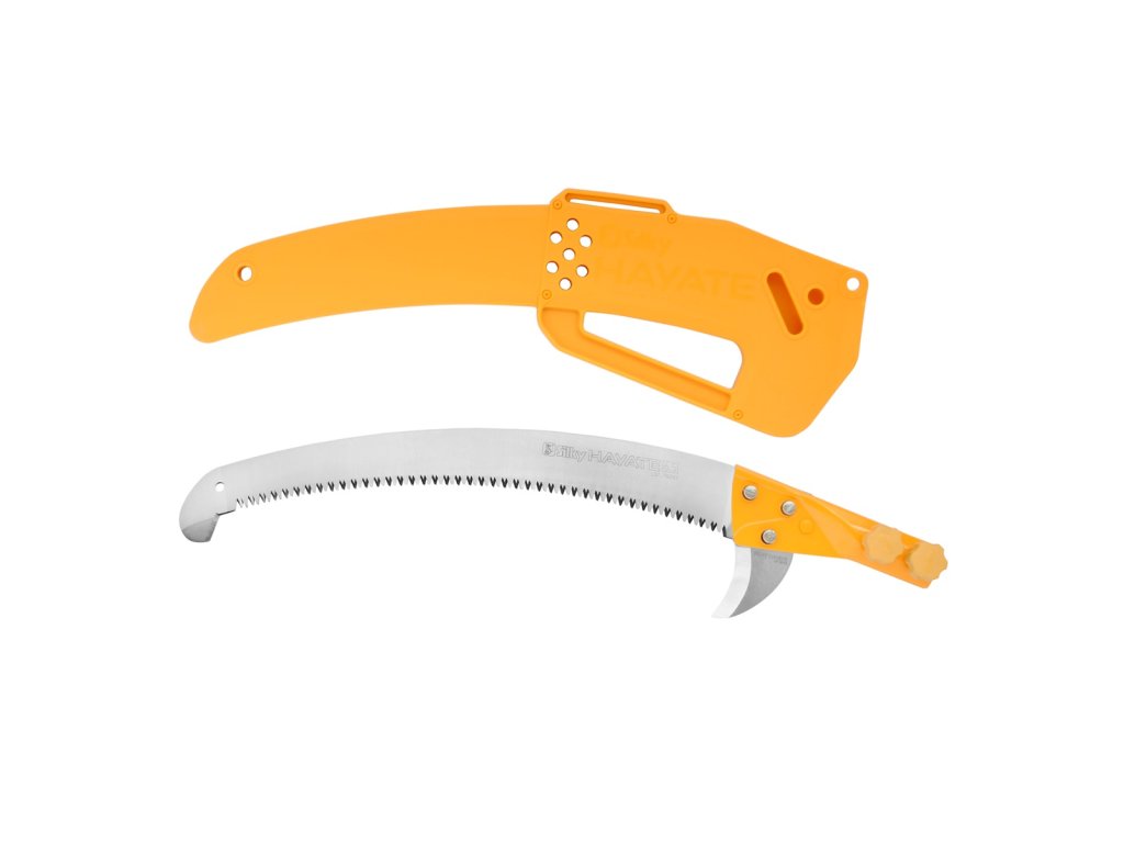 Jedná se o opravdu robustní teleskopickou pilu určenou speciálně pro profesionály. Její extrémní délka Vám v plně roztaženém stavu ummožní prořezávat větve ve výšce až 6,5 metru bez toho, aniž byste museli použít žebřík. Řeznou rychlost pily Hayate lze pak srovnat s rychlostí malé motorové pily. Čepel je konstruována tak, aby zabírala primárně v tahu, a proto má pila takový řezný výkon, že se i při delší práci nebudete cítit vyčerpaní. Využijte váhu kvalitního hliníkového těla a nechte pilu pracovat za Vás! Vlastnosti Čepel o délce 420 mm je osazena unikátními zuby Mirai-Me a je vyrobena ze speciální kovové slitiny, díky čemuž je odolná a neuvěřitelně pevná. Dva srpky umístěné na koncích čepele spolupracují pro optimální výsledek. Horní srpek Vám pomůže udržet čepel v řezu. Mimo to ho ale můžete použít i k odřezávání malých větviček z kmene nebo k vytrhávání malých (mrtvých) větví ze stromu. Spodním srpkem pak můžete podřezávat kůru, aby se při pádu větve neodtrhla od kmene. Pokud by Vám však spodní srpek překážel při prořezávání hutčích korun stromů, můžete ho jednoduše demontovat. Hliníková násada má oválný tvar, díky které máte velmi přesnou kontrolu nad směrem řezu, což budete potřebovat při prořezávání ve velké výšce. Navíc tento tvar poskytuje větší pevnost a tuhost po celé délce tyčové pily a minimalizuje ohýbání. Při plném rozložení násady pak pila dosahuje maximální délky 5 metrů. Hayate má celkově těžší konstrukci než pily z řady Hayauchi, ale za to je mnohem robustnější. I přes větší hmotnost se však s pilou stále dobře manipuluje. Dva zajišťovací mechanismy (tlačítka a páky) společně vytvářejí nejbezpečnější a nejstabilnější zajištění preferované délky násady, přičemž nejnižší část je opatřena gumou rukojetí pro pohodlné a bezpečné uchopení i za mokra. Údržba pily Pro zachování účinnosti je nutné udržovat čepel v čistotě. Pokud je tedy ostří zalepeno pryskyřicí, či mízou, použijte k čištění olivový olej. Jedná se o účinný a ekologický způsob, jak rozpustit tyto nečisoty. Pokud pilu déle nepoužíváte, dbejte na to, aby byla vždy suchá. Praktické příslušentví Volitelně lze pilu osadit hákem HookFox, který se připevňuje pod čepel. S tímto hákem snadno ze stromu stáhnete uřezané větve, které se zakly v koruně. Lze ho navíc prakticky využít pro vytažení horolezeckého lana vysoko na strom.Dodatočné parametre