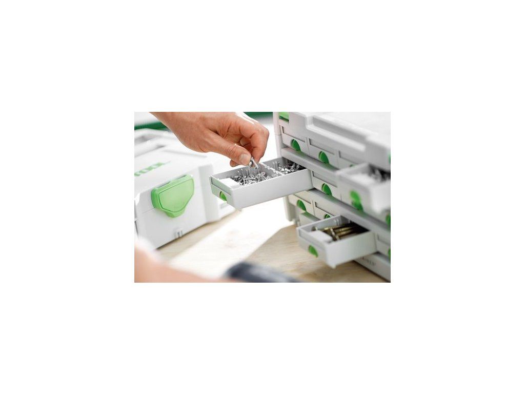 | Jedinečné vlastnosti výrobku text: | Všetky malé diely prehľadne uložené, označené etiketou a vždy poruke bez zbytočného hľadania.|Flexibilita vďaka individuálnemu vybaveniu priečkami, obojstranne vysúvateľným zásuvkám a vkladacím boxom, ktoré je možné rozdeliť.|Kompatibilné a spájateľné so všetkými generáciami Systainerov, mobilnými vysávačmi a mnohým ďalším systémovým príslušenstvom. |