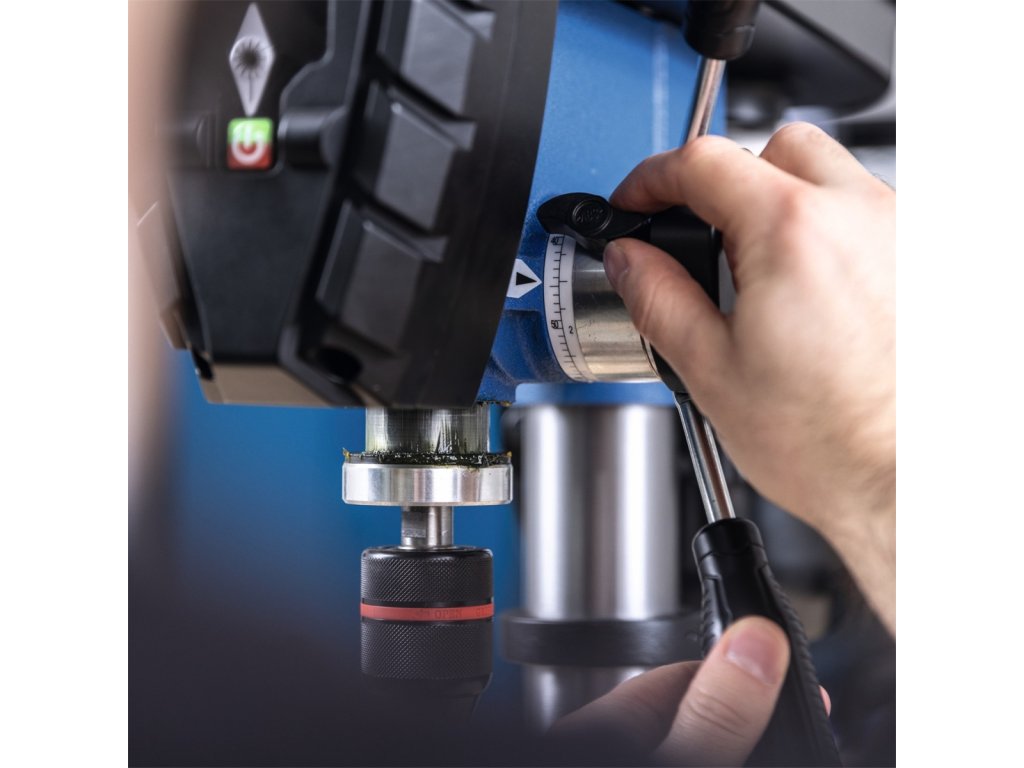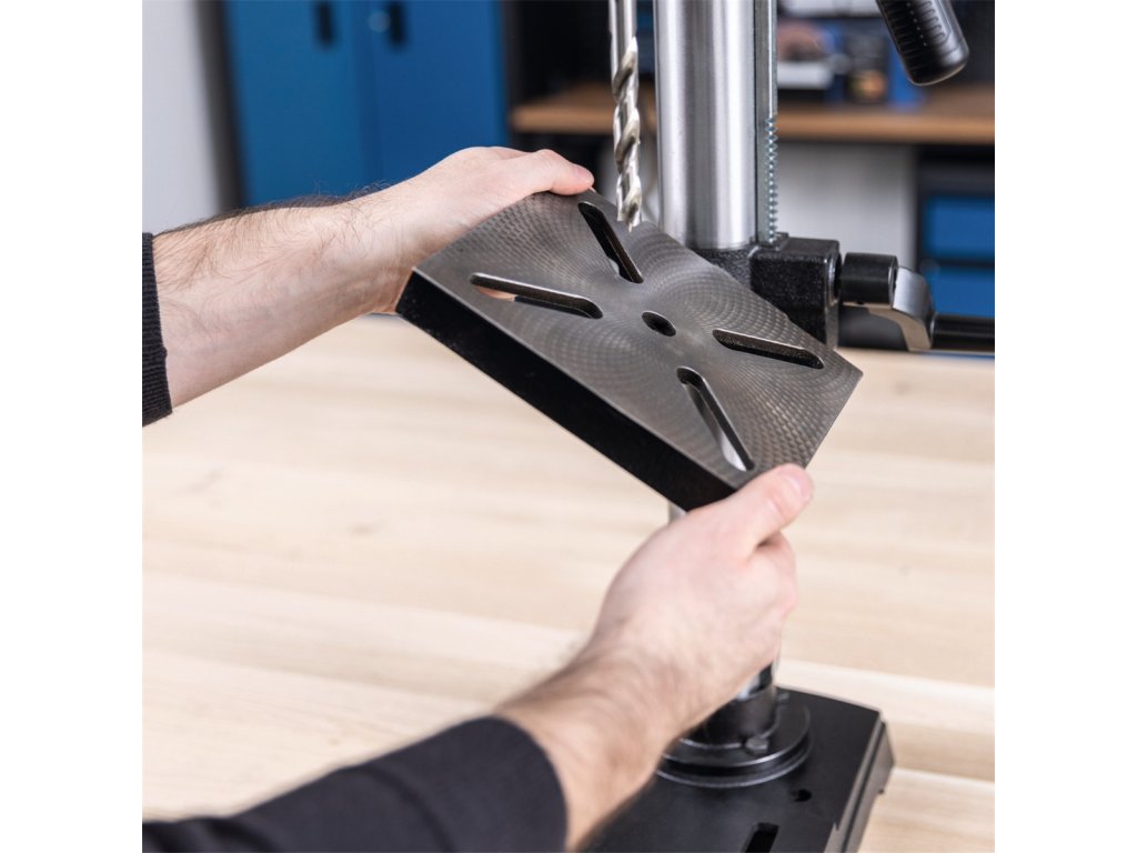 Pokud hledáte spolehlivého pomocníka pro opravdu přesné vrtání, je stolní vrtačka Scheppach TBM 250 Vario tou pravou volbou. Silný 600W indukční motor poskytuje dostatek výkonu pro vrtání do dřeva, hliníku, plastů i oceli, takže vrtačka zvládne širokou škálu projektů v dílně i na stavbě. Díky plynule nastavitelné hloubce vrtání až 60 mm a širokému rozsahu otáček 450–2 580 ot./min lze stroj snadno přizpůsobit různým materiálům i typům vrtáků. Integrovaný křížový laser výrazně zvyšuje přesnost vrtání a pomáhá rychle nastavit ideální bod vedení vrtu. Masivní litinová konstrukce se sloupem o průměru 59,5 mm zajišťuje maximální stabilitu při práci. Pracovní stůl o rozměrech 198 × 194 mm je otočný o 360°, výškově nastavitelný a lze jej naklopit až o ±45°, což umožňuje pohodlné vrtání i složitějších obrobků. Digitální displej navíc zobrazuje aktuální otáčky v reálném čase. Rychloupínací sklíčidlo s ložisky pojme vrtáky od 1,5 do 13 mm a nastavitelný doraz hloubky zajistí konzistentní výsledky i při sériovém vrtání. Výkyv 125 mm dovoluje vrtat obrobky o průměru až 250 mm. Vrtačka má pevnou základnu pro bezpečné uchycení ke stolu a ergonomická pogumovaná rukojeť zajišťuje komfortní ovládání i při delší práci. Kontaktní údaje výrobce / dovozce / zplnomocněného zástupce výrobce v EU: Scheppach GmbH Günzburger Str. 69, 89335 Ichenhausen, Germany email: service@scheppach.comDodatočné parametre