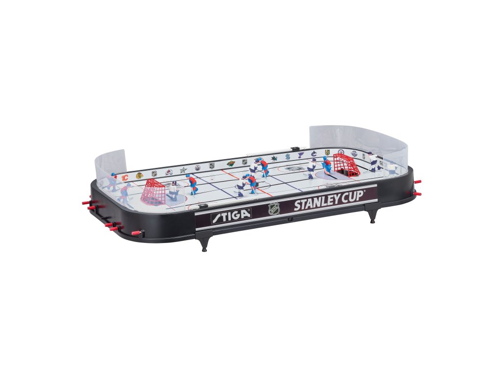 Stolný hokej Stiga Stanley Cup s licenciou NHL, hráči hrajú v dresoch tímov severoamerickej NHL, klzisko aj mantinely obsahujú nálepky a znaky tímov NHL. V základnej výbave hokeja sa nachádzajú tímy Detroit Wings a Toronto Maple Leafs.
