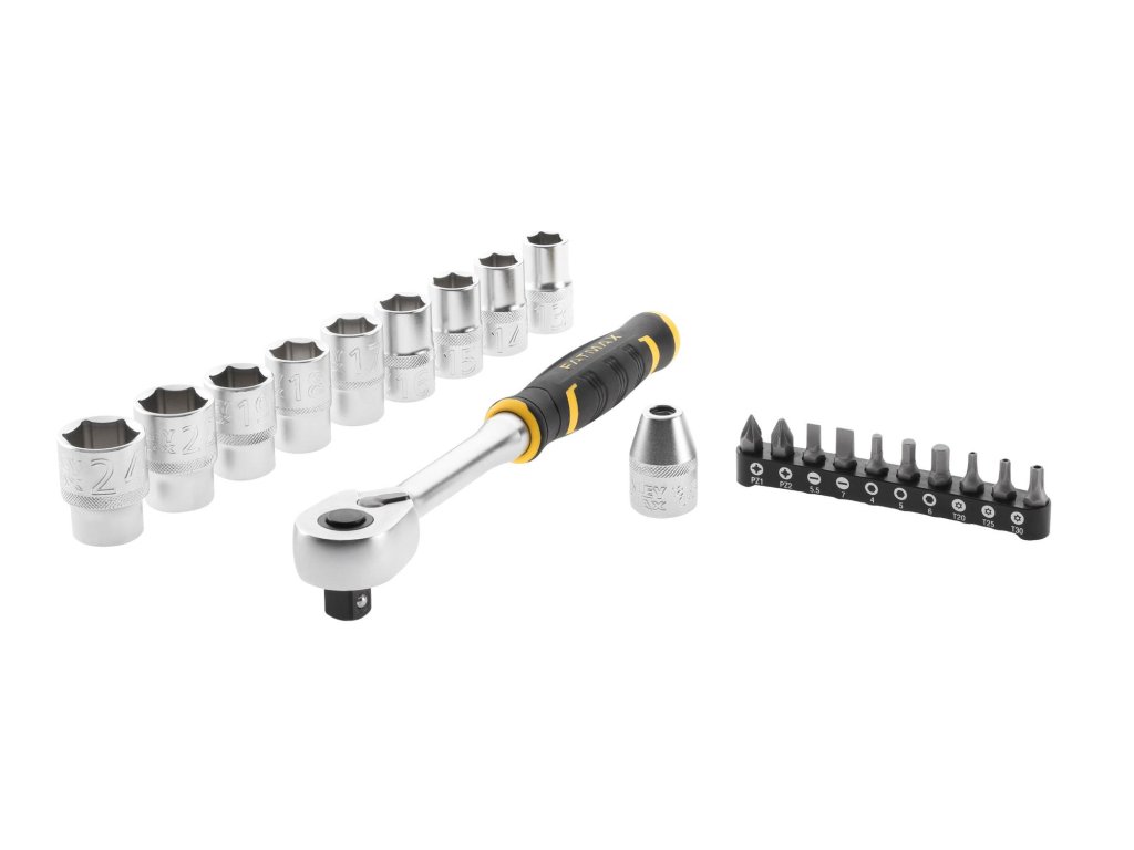 • FMMT82681-0: 1/2” ráčňa, 9x 1/2” 12-hranné hlavice (13 - 24 mm), 1/2” adaptér na bity, súprava bitov (3,5; 4,5; 8; TT15; TT20; TT25; TT30; Ph0; Ph1; Ph2)