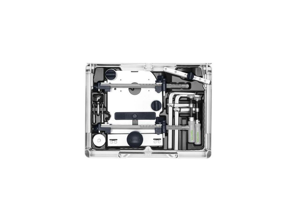 | Rozsah dodávky: | vodiaca doska, centrovací tŕň, vrták na kovanie HW Ø 35 mm, kolíkový vrták HW Ø 5 mm (tvaru strechy), kolíkový vrták HW Ø 5 mm (so strediacim hrotom a výstružníkom), 2 bočné dorazy s dorazovým jazdcom, skrutkovacie svorky FSZ 120 (2 kusy), Dĺžkový doraz, skrutkovač SW 5, Systainer SYS3 M 112 |