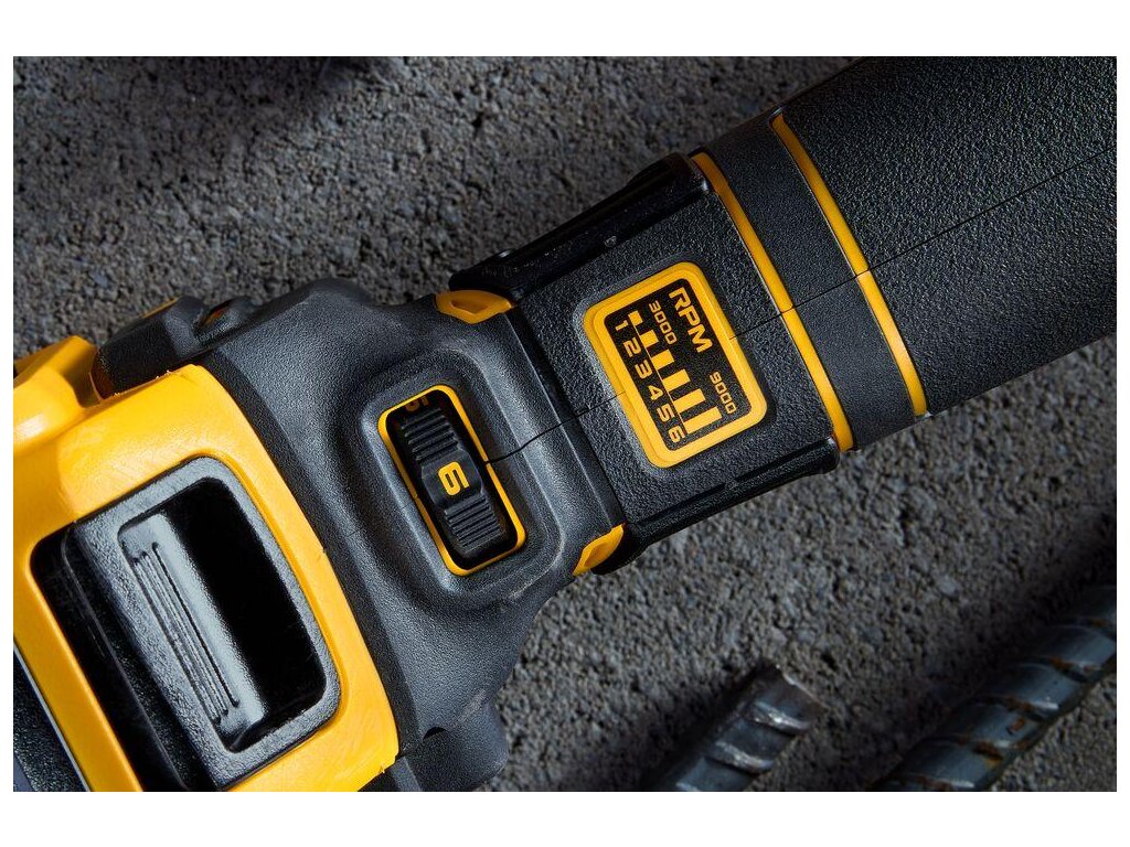 - Akumulátorová uhlová brúska 125mm 18V XR FLEXVOLT ADVANTAGE s reguláciou otáčok.