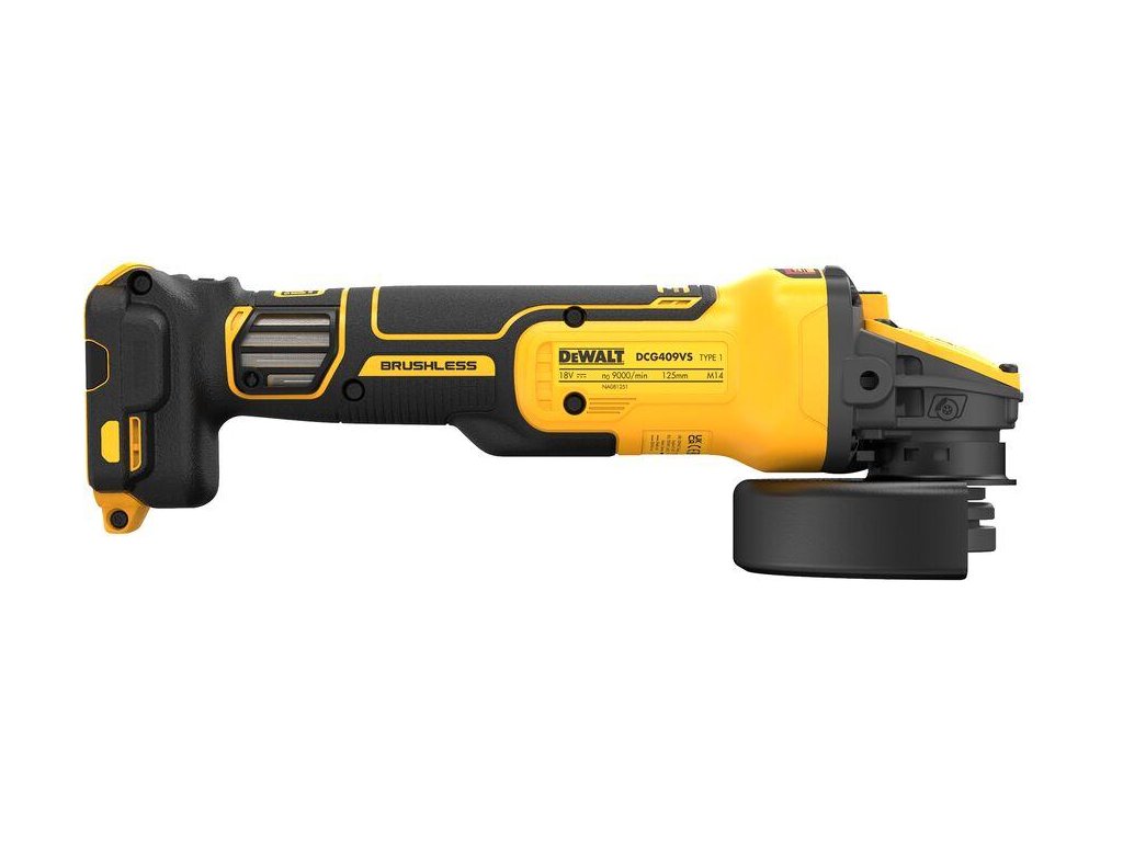 - Akumulátorová uhlová brúska 125mm 18V XR FLEXVOLT ADVANTAGE s reguláciou otáčok.