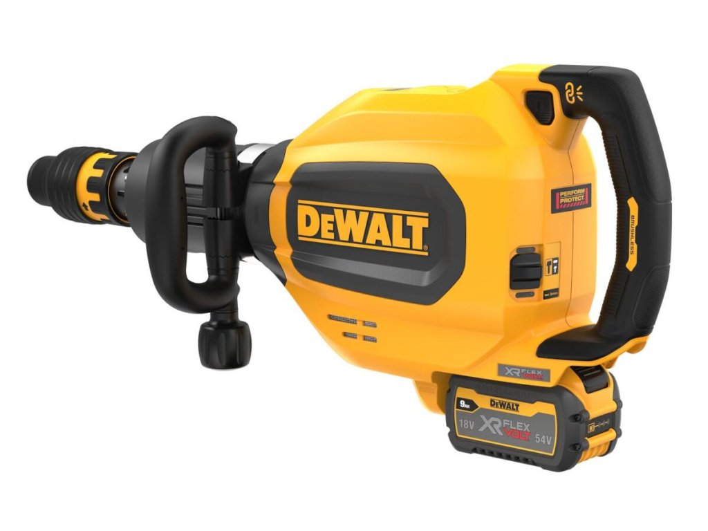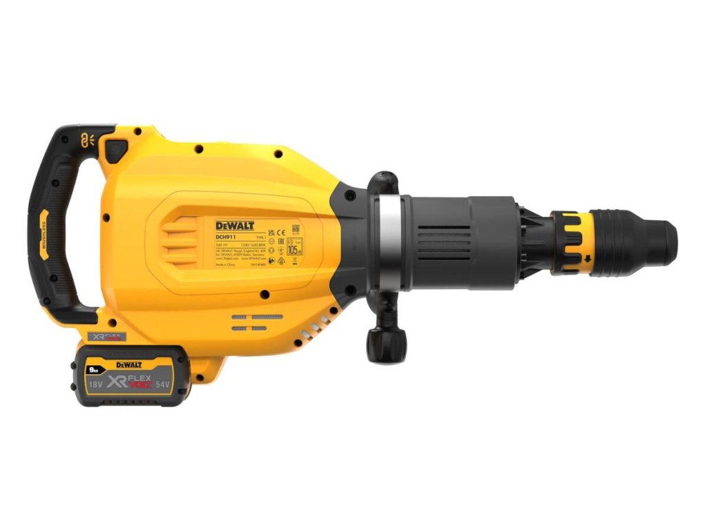 Bezuhlíkový motor DEWALT 54 V a akumulátor s vysokou kapacitou 9 Ah poskytuje energiu rázu, ktorá dosahuje 27 joulov, a umožňuje tak zvládanie najnáročnejších demolačných prác na staveniskách.